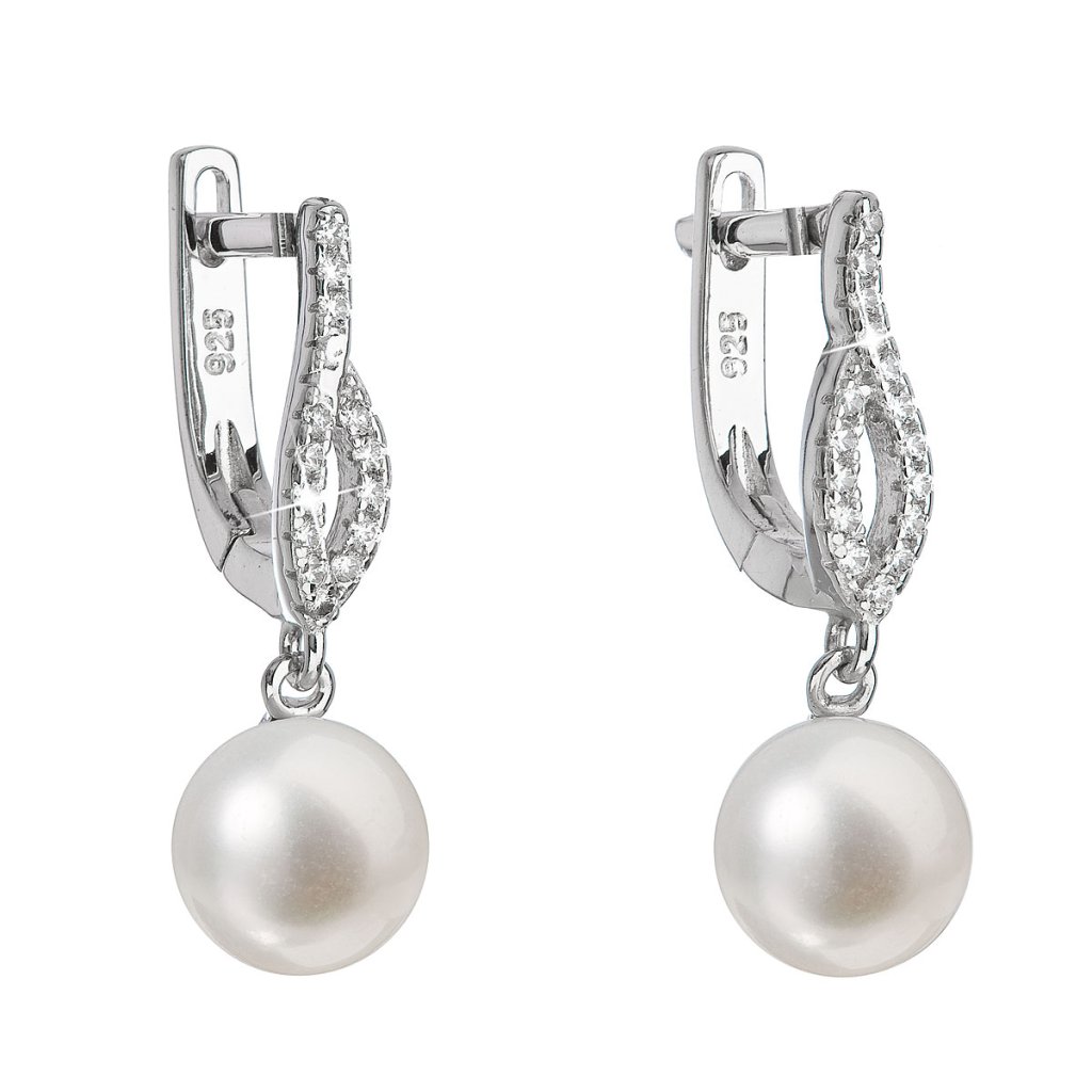 Strieborné náušnice visiace s bielou riečnou perlou 21027.1