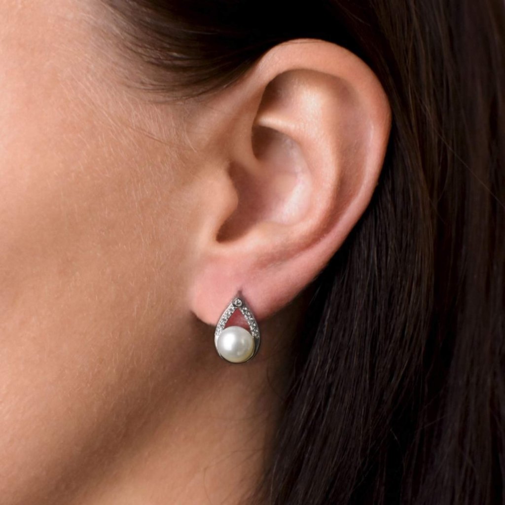 Náušnice sú vyrobené zo striebra o rýdzosti 925/1000 s povrchovou úpravou ródiom a dostanú vás svojim jedinečným spracovaním v originálnom tvare vo forme kvapky. Náušnice sú doplnené o vysoko lesklú bielu riečnu perlu tej najvyššej kvality AAA a tiež niekoľkými zirkónmi, ktoré šperku prepožičiavajú nádherný lesk . Šperk neobsahuje žiadny prídavok niklu, a tak je vhodný aj pre osoby s alergiou. Náušnice majú zapínanie na balónik , ktorá ich spoľahlivo ochráni proti nechcenej strate.
