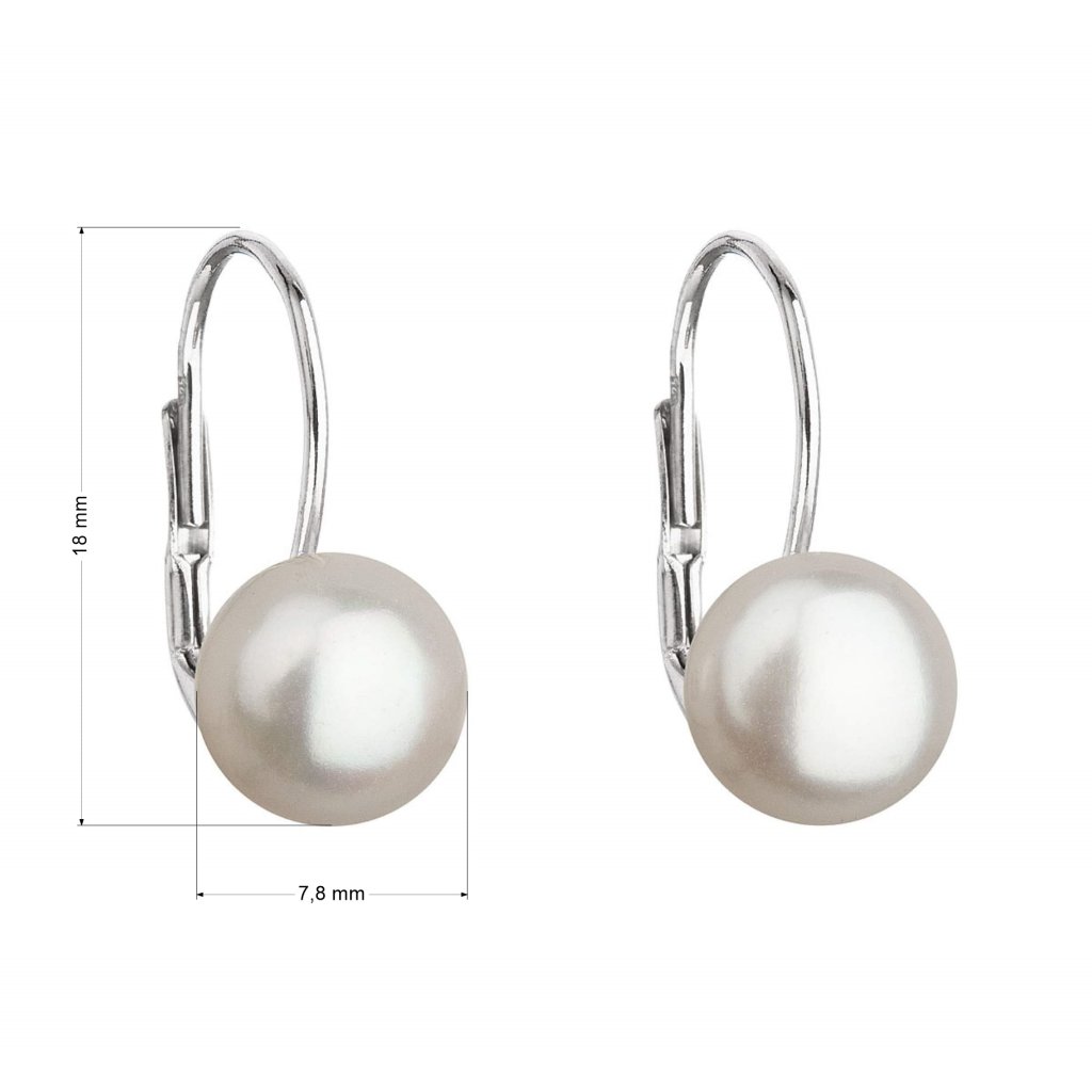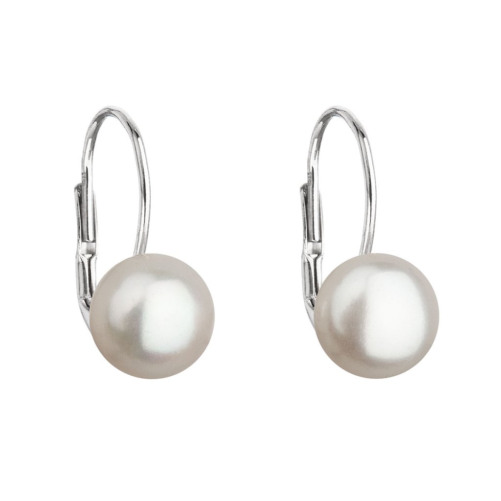 Strieborné náušnice visiace s bielou riečnou perlou 21044.1