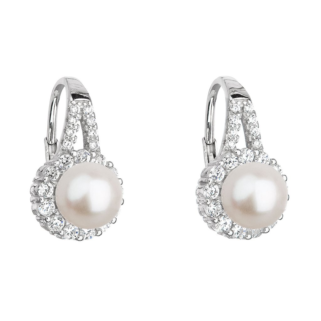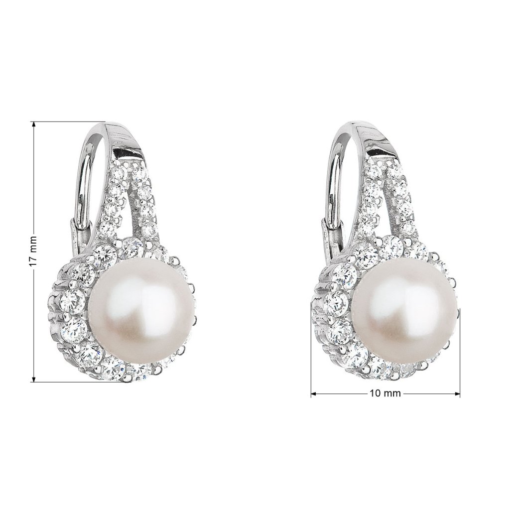 Precízne spracované strieborné náušnice zdobené bielou okrúhlou perlou a trblietavými zirkónmi krásne ozdobia vaše uši!
