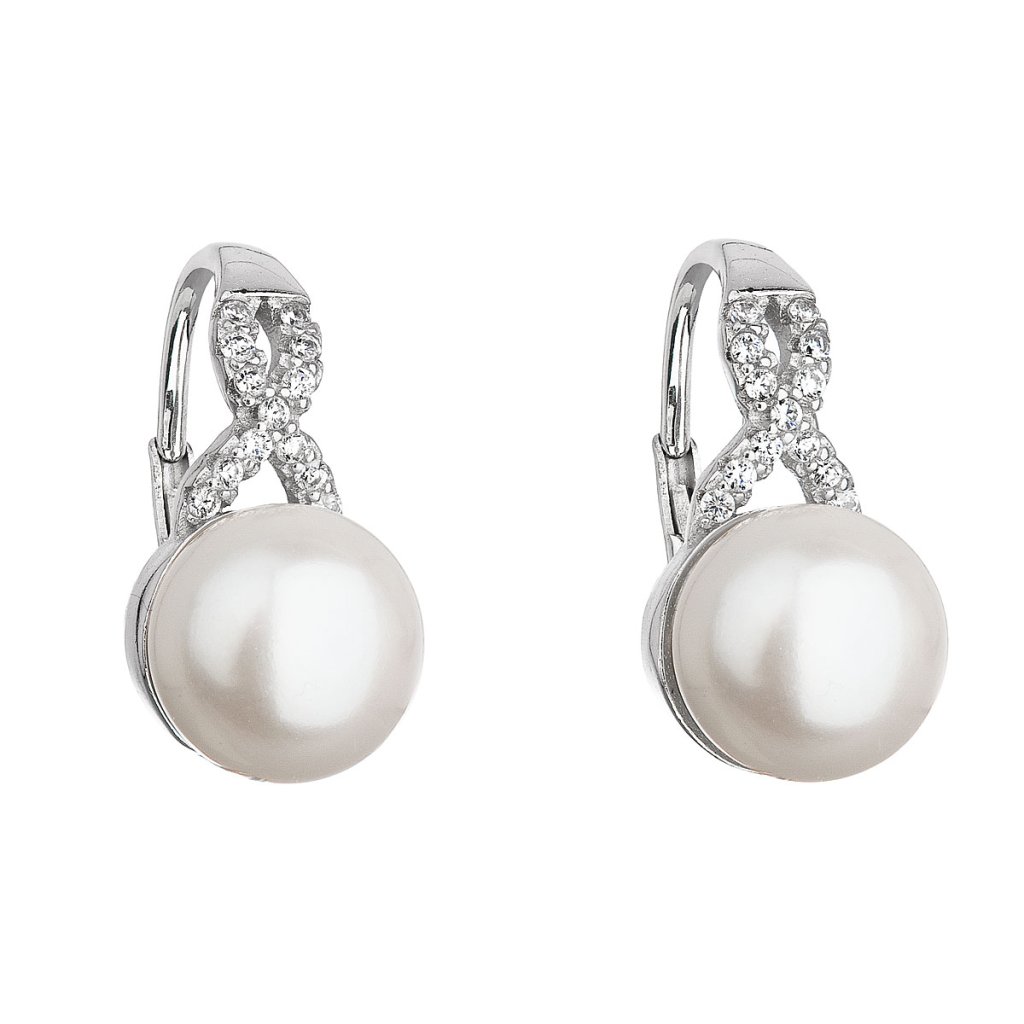 Strieborné náušnice visiace s bielou riečnou perlou 21048.1