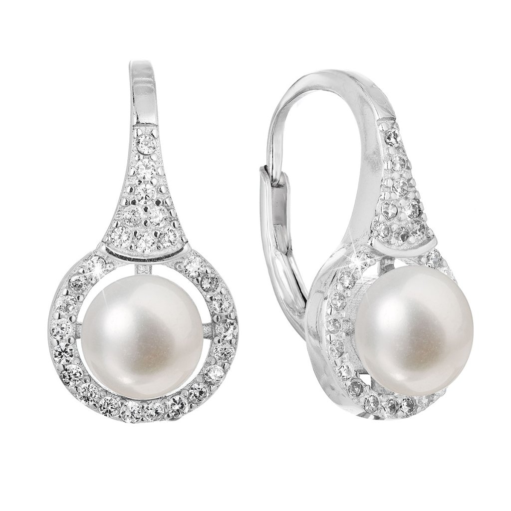 Strieborné náušnice visiace s bielou riečnou perlou 21051.1