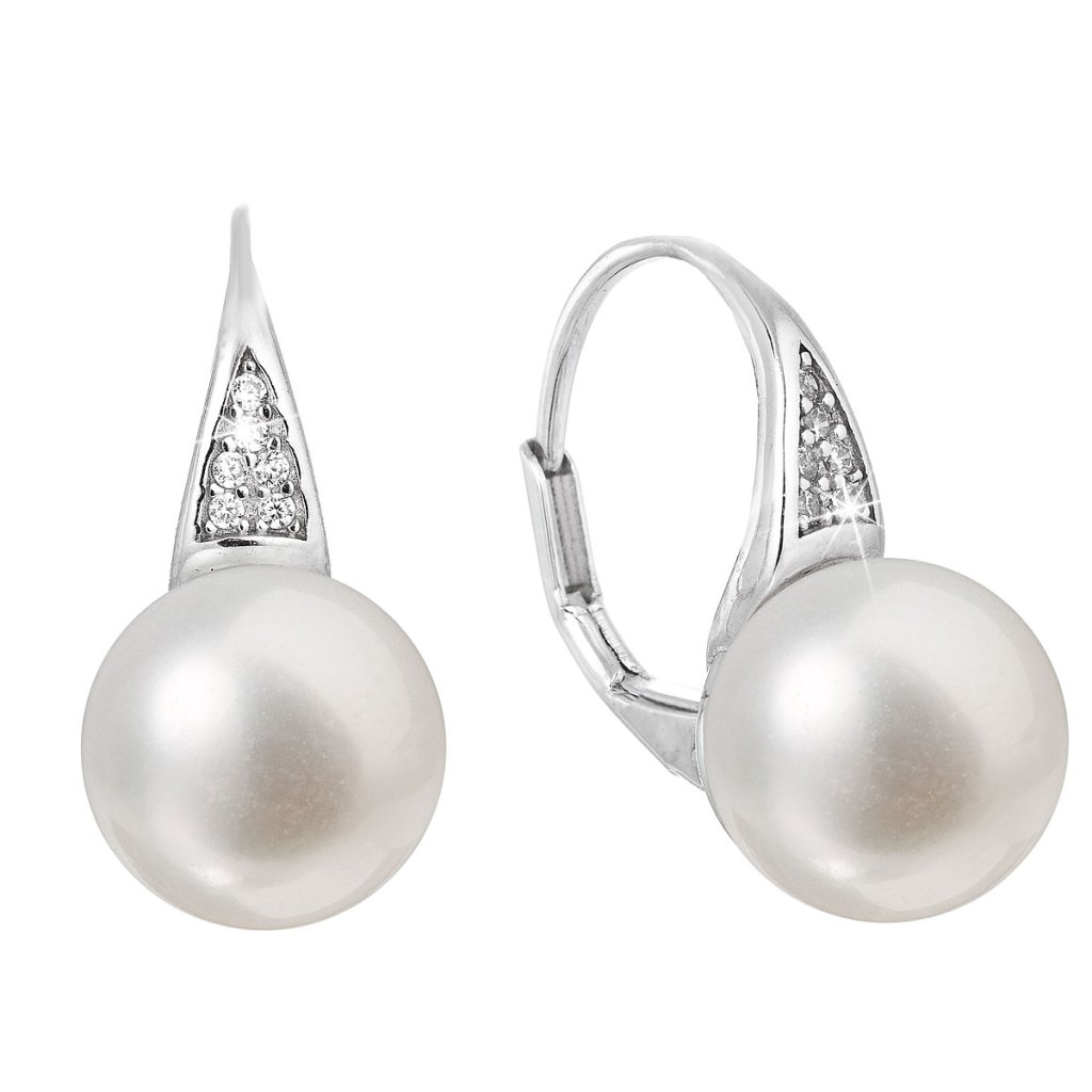 Strieborné náušnice visiace s bielou riečnou perlou 21056.1
