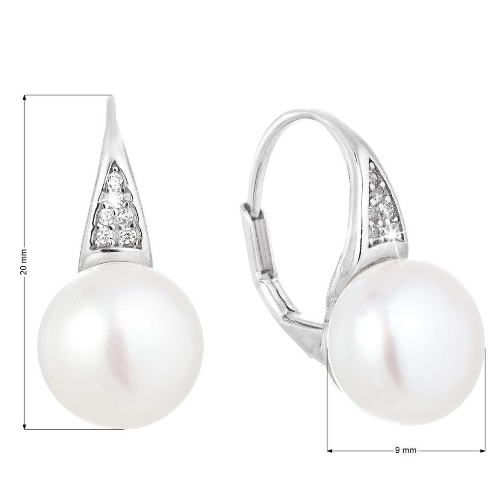 Parametre strieborných visiacich náušníc s bielou riečnou perlou 21056.1