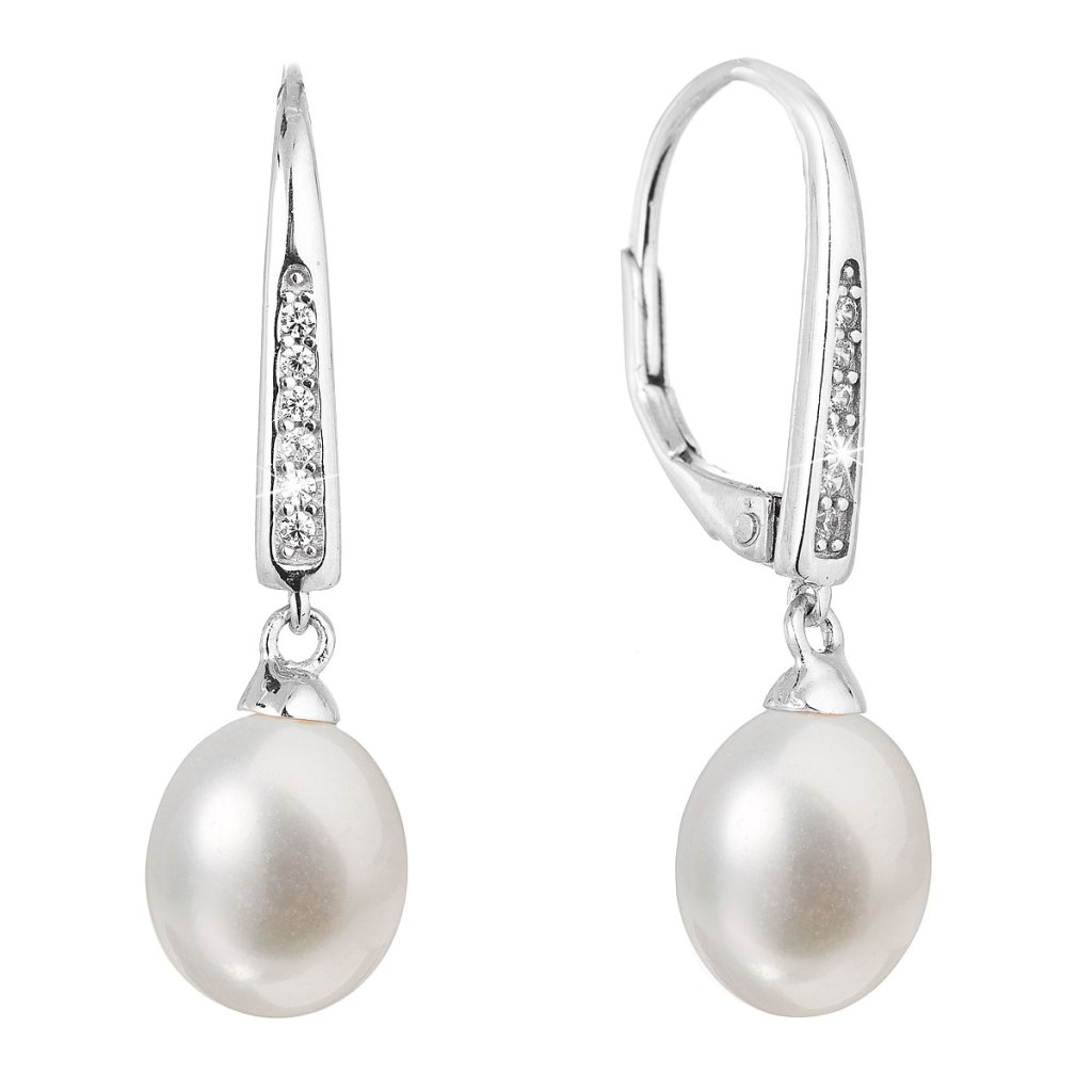 Strieborné náušnice visiace s bielou riečnou perlou 21059.1