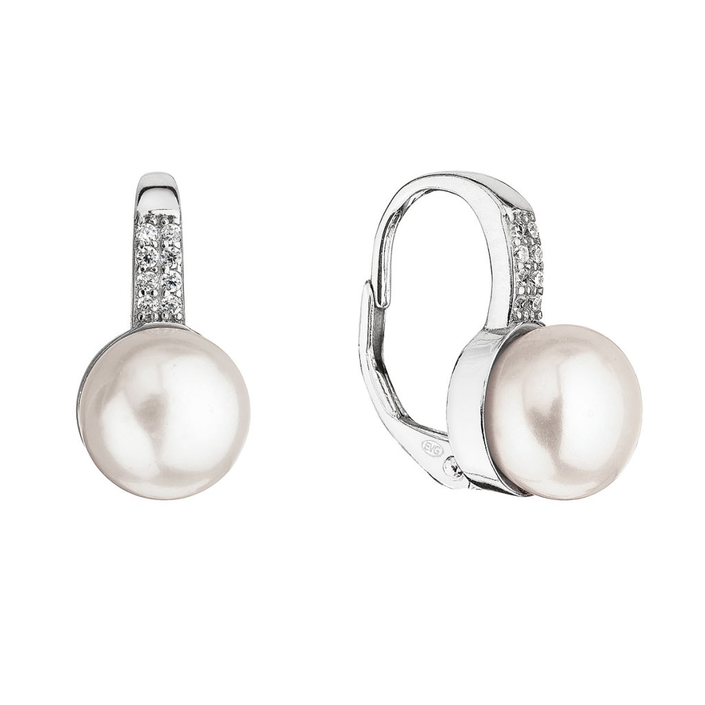 Strieborné náušnice visiace s bielou riečnou perlou 21069.1