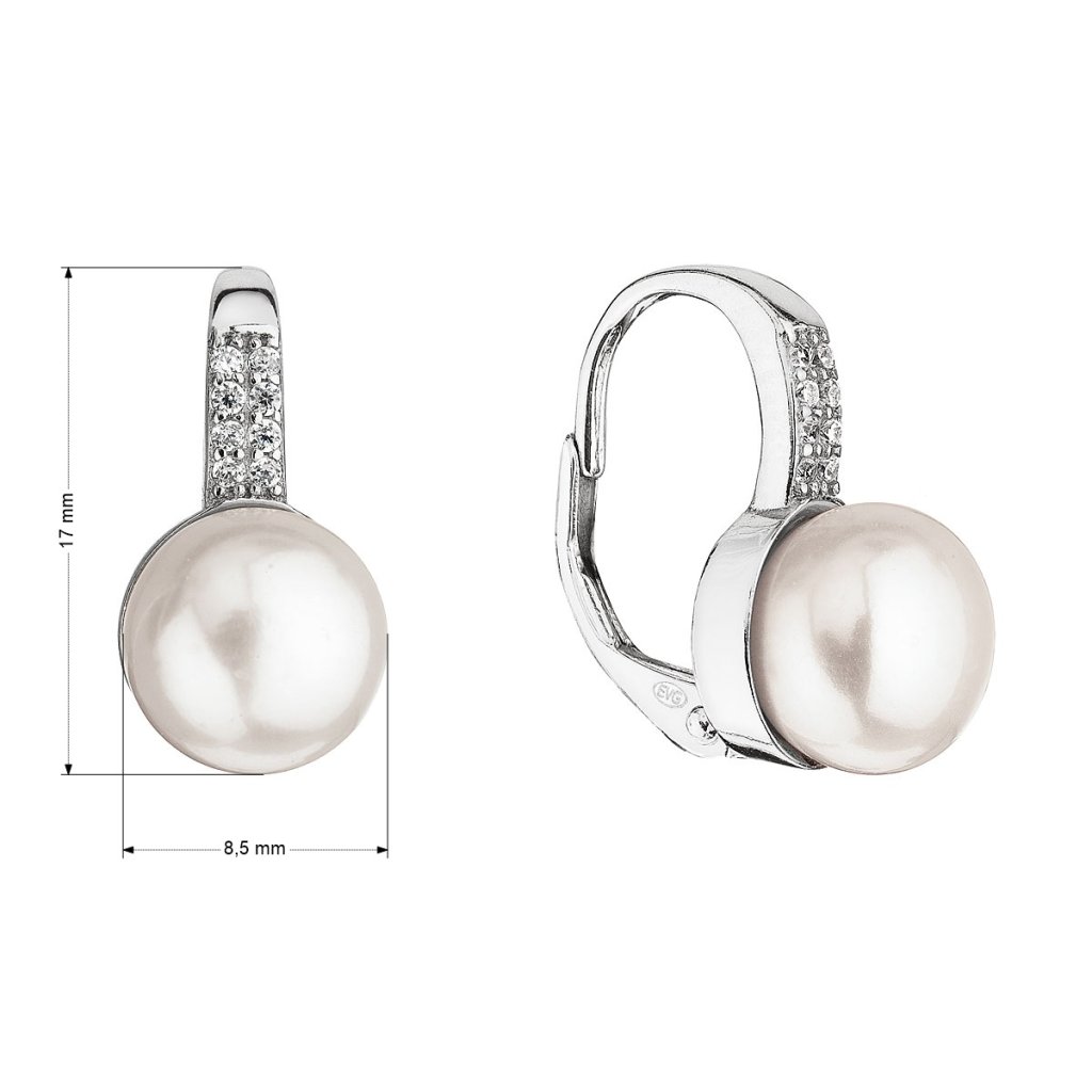 Parametre strieborných visiacich náušníc s bielou riečnou perlou 21069.1
