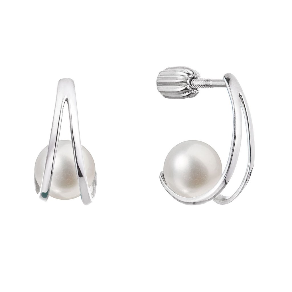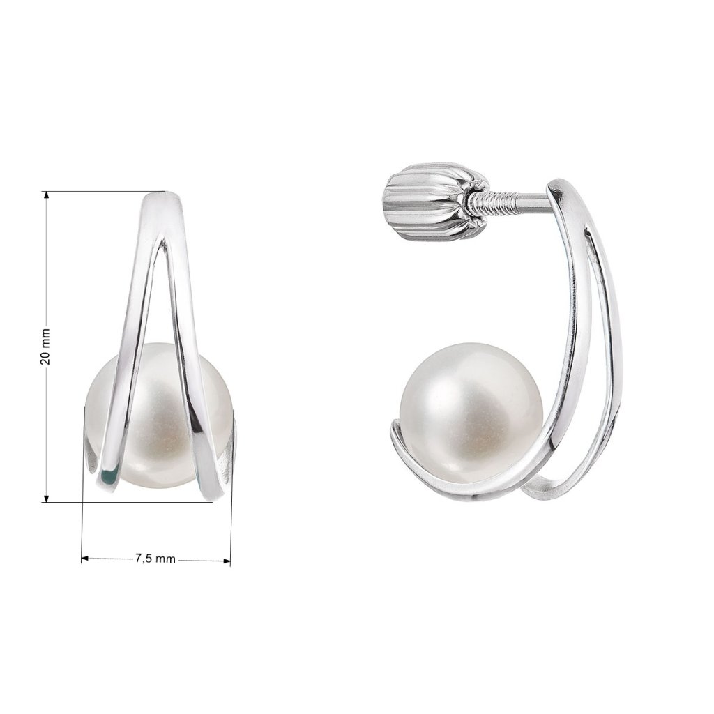 Strieborné náušnice visiace s bielou riečnou perlou 21078.1