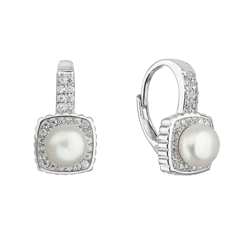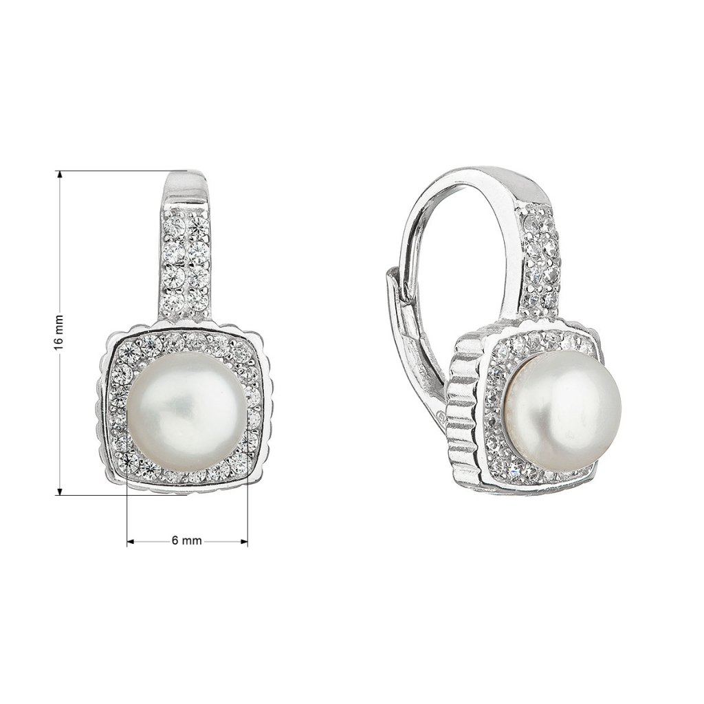 Strieborné náušnice visiace s bielou riečnou perlou štvorec biely 21073.1