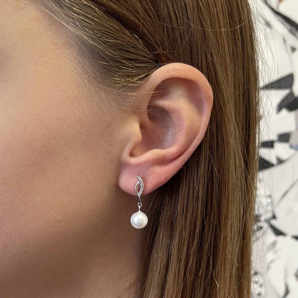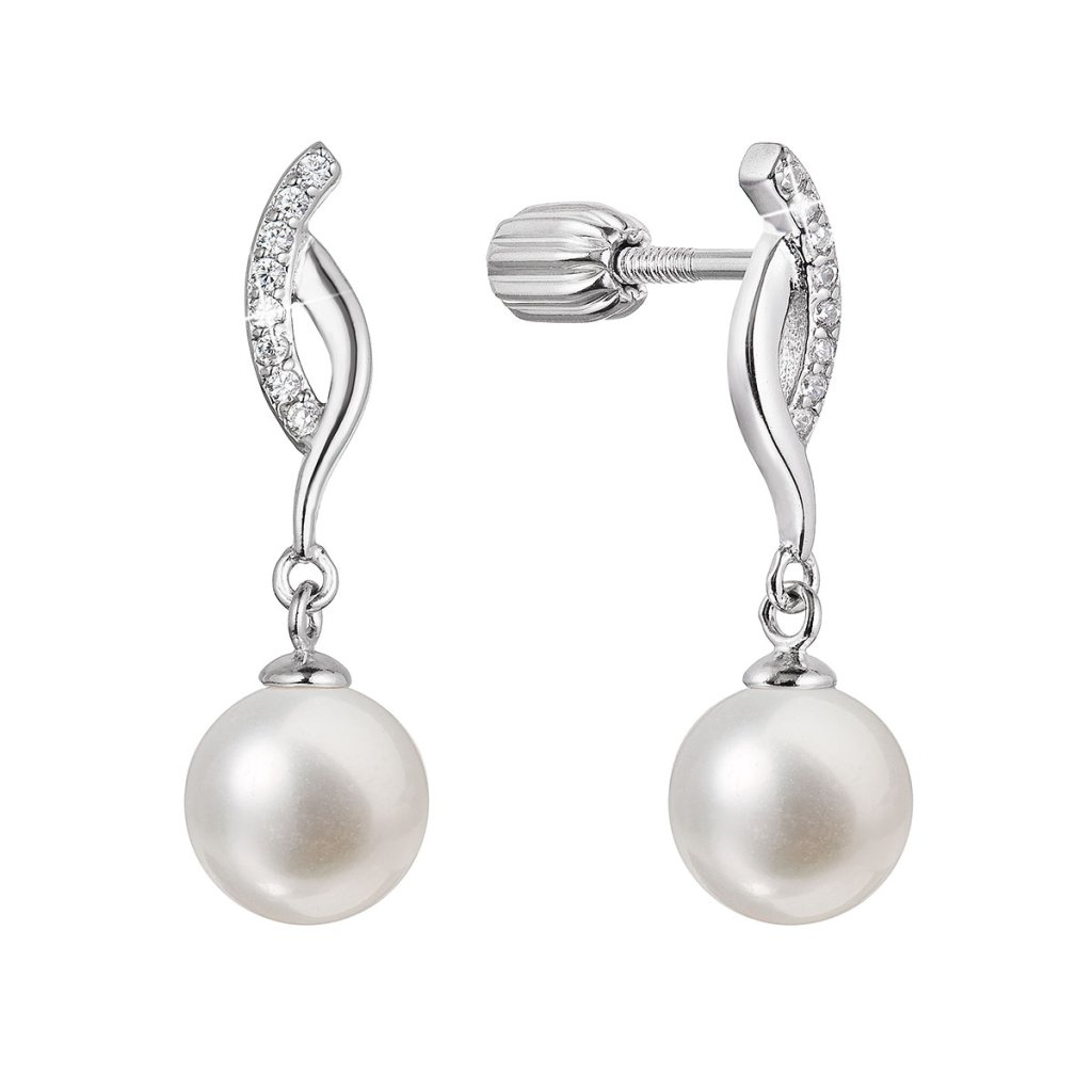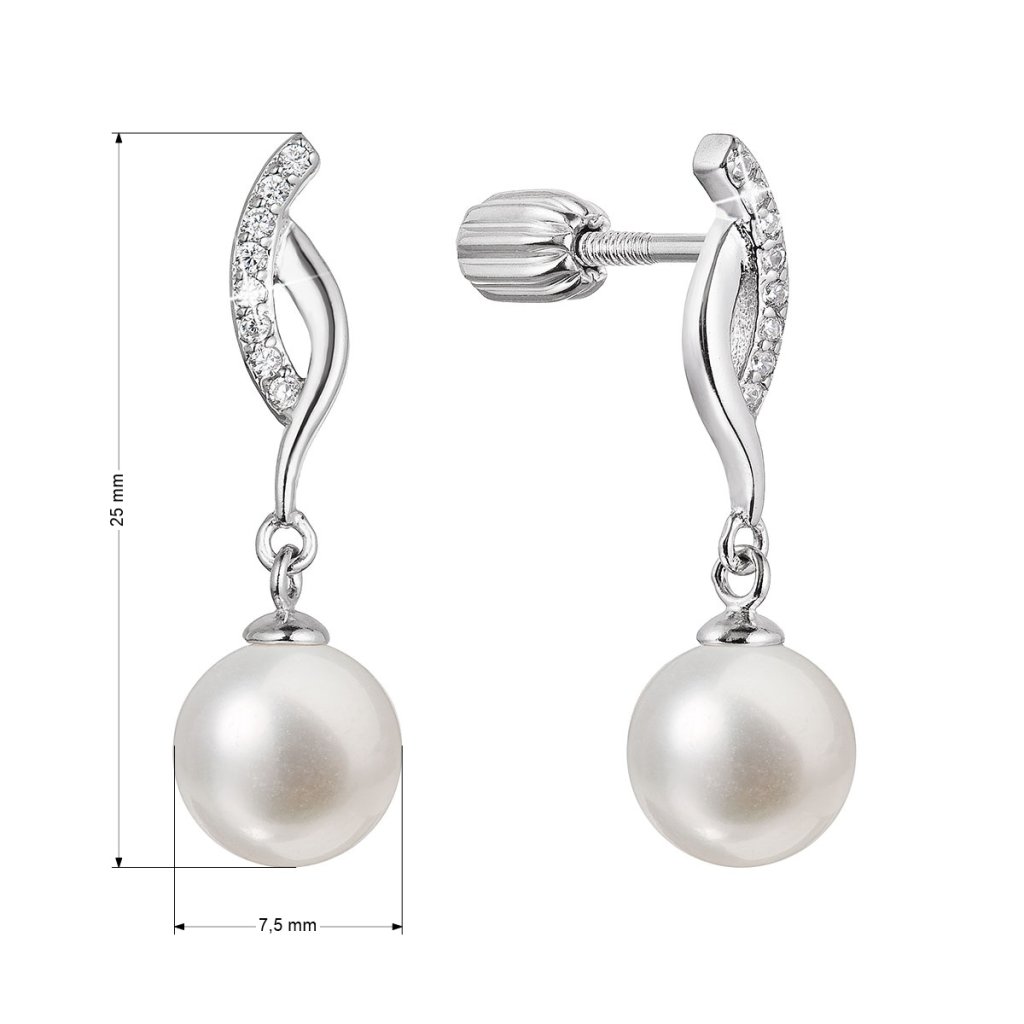 Strieborné náušnice s guľatou bielou riečnou perlou a zirkónmi zvýraznia Váš šarm.Náušnice 21094.1B sú vyrobené zo striebra o rýdzosti 925/1000 vrátane povrchovej úpravy ródiom. Ródium ochráni šperk proti sčerneniu, zožltnutiu i poškriabaniu. Pravá biela riečna perla sa hojdá na striebre vysadenom čírymi zirkónmi. Priemer perly je 7,5 mm a kvalita A. Šperk neobsahuje prídavok niklu, a tak ho môžu nosiť aj ľudia náchylní na alergické reakcie. Náušnice majú zapínanie na balónik , ktorý ich ochráni proti nechcenej strate.