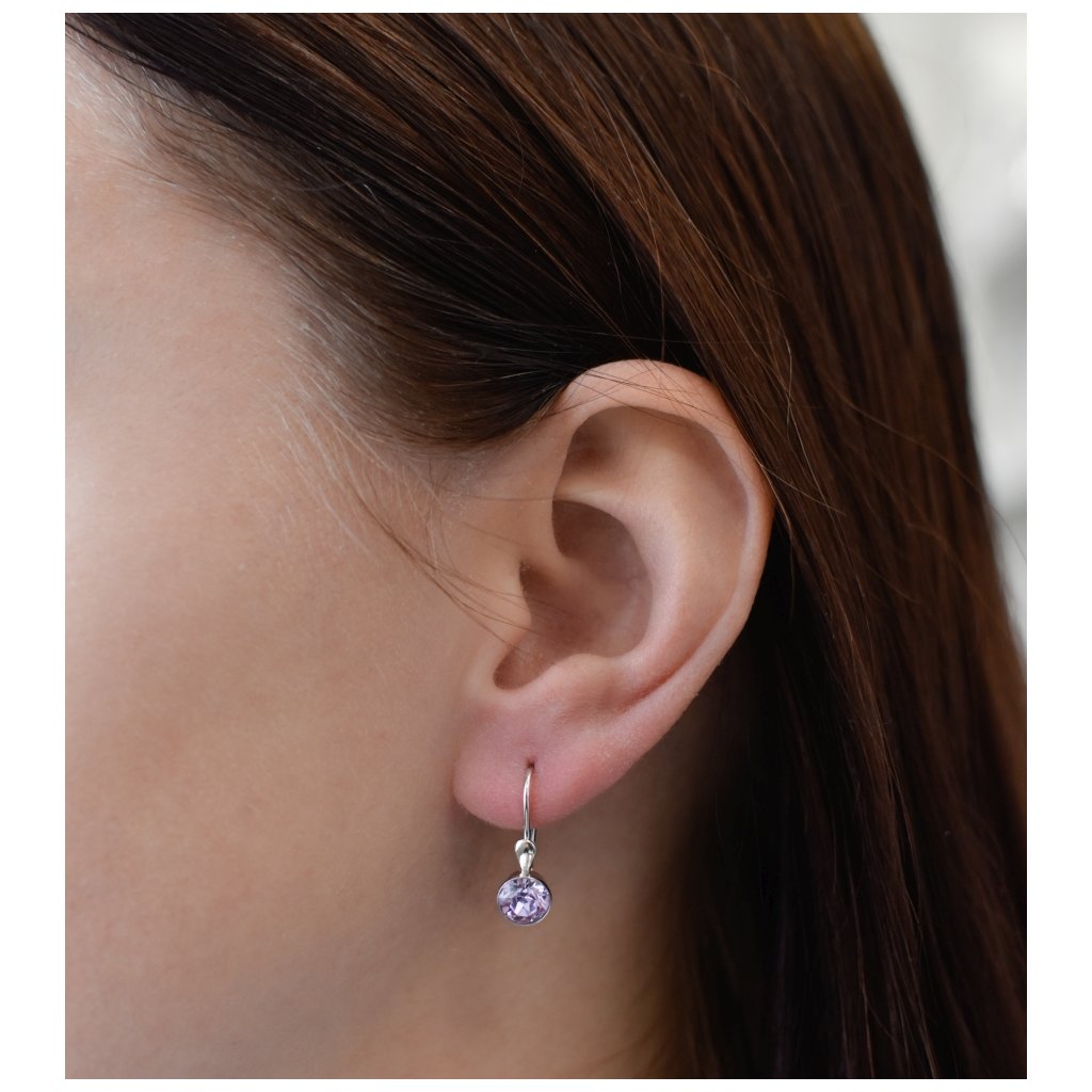 Parametre strieborných visiacich náušníc s kryštálmi Swarovski fialové okrúhle 31112.3 violet