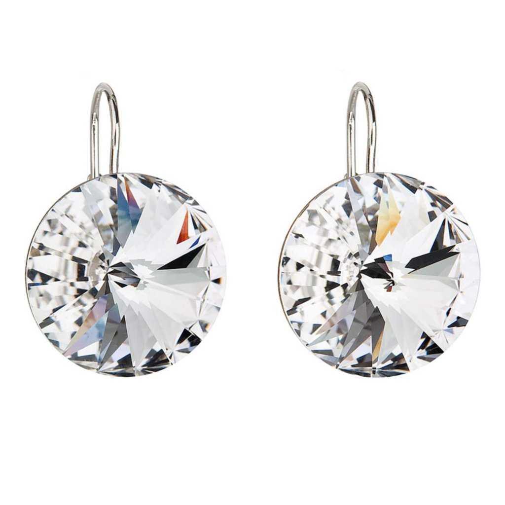 Parametre strieborných visiacich náušníc s kryštálmi Preciosa biele okrúhle 31153.1