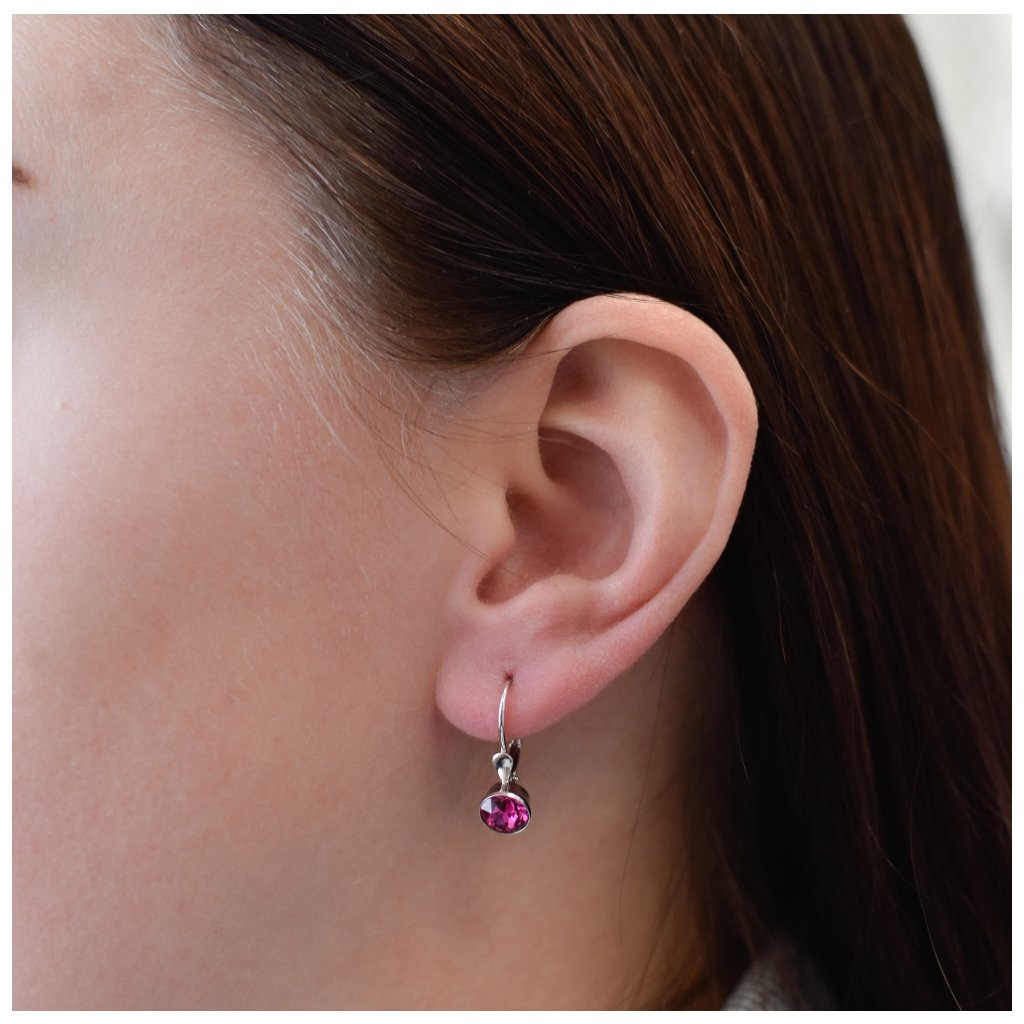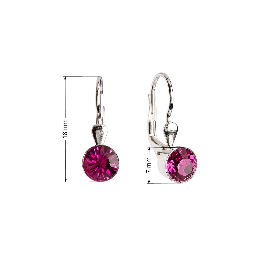 Parametre strieborných visiacich náušníc s kryštálmi ružové okrúhle 31112.3 fuchsia