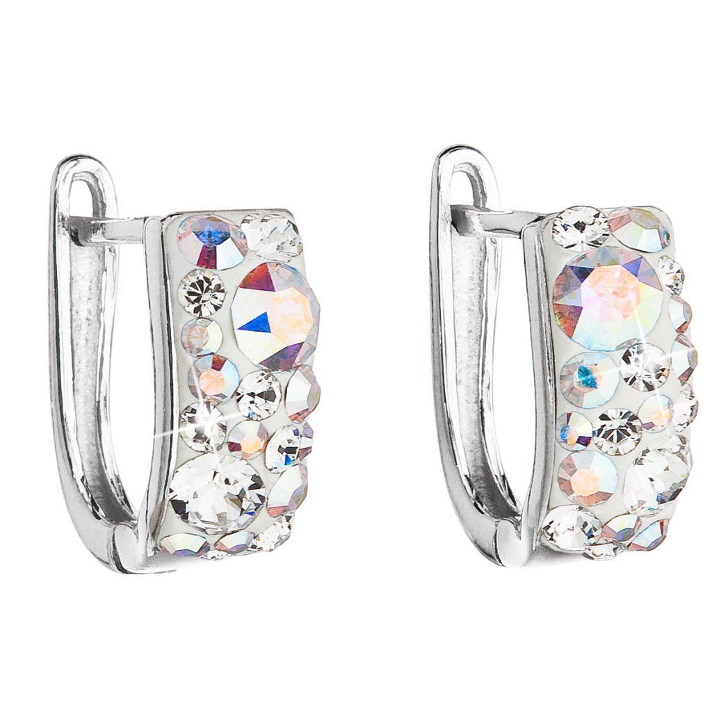 Strieborné náušnice visiace s kryštálmi Swarovski ab efekt polkruh 31123.2
