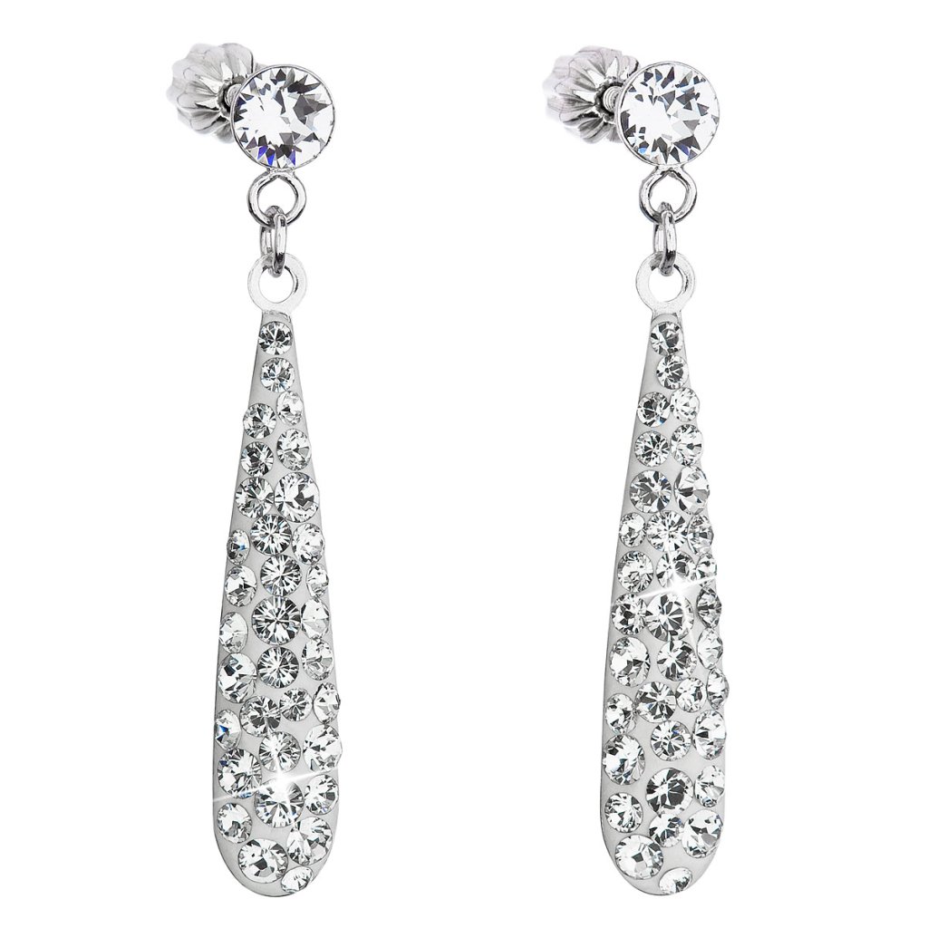 Strieborné náušnice visiace s kryštálmi Swarovski biela slza 31163.1