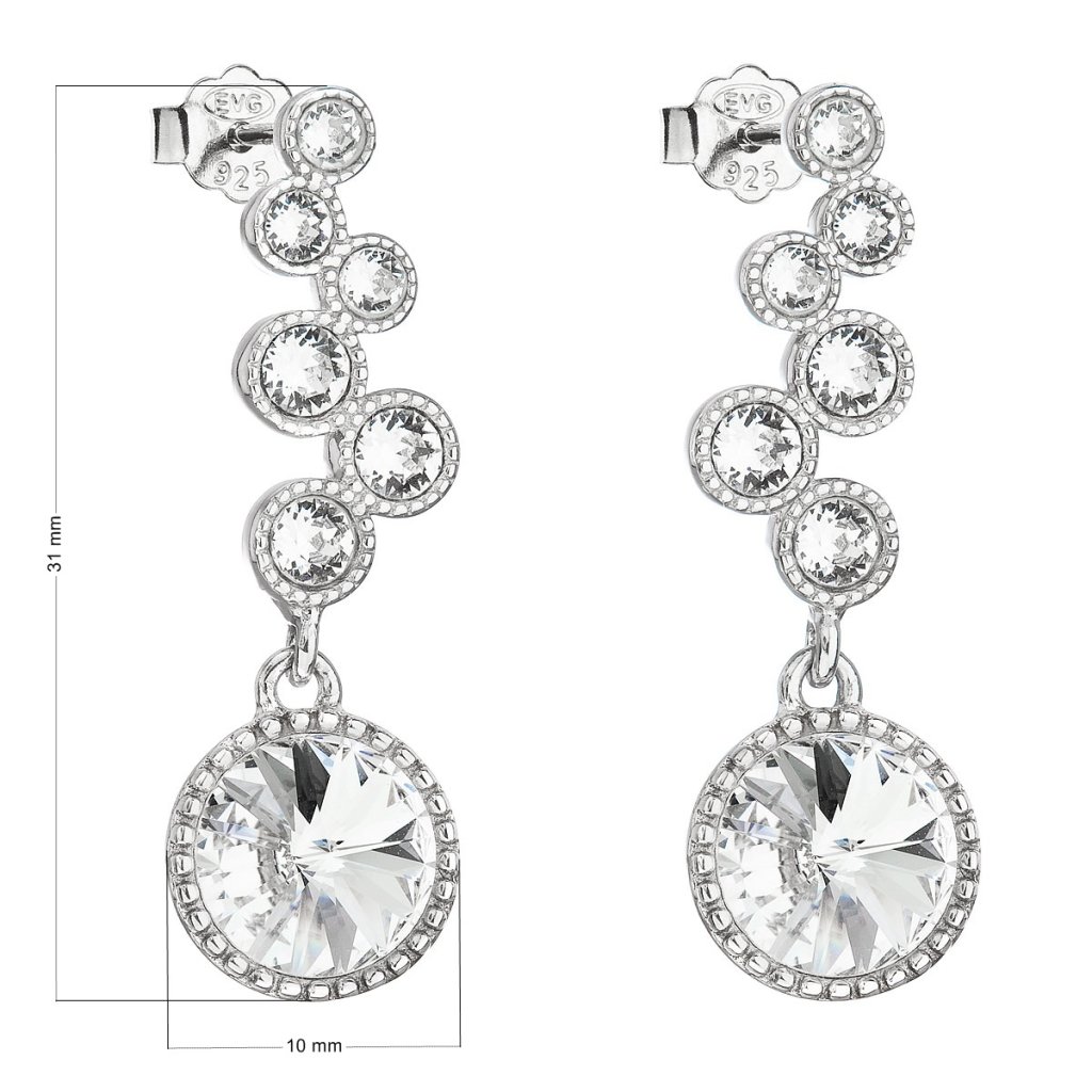 Parametre strieborných visiacich náušníc s kryštálmi Swarovski biele okrúhle 31265.1