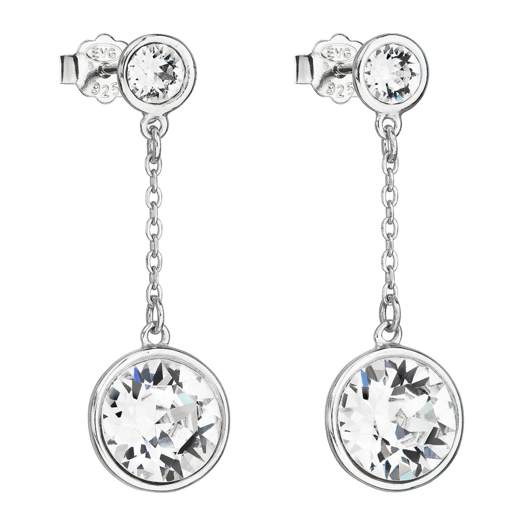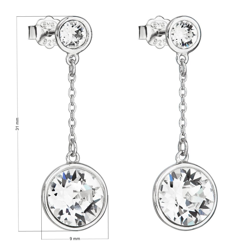 Strieborné náušnice visiace s kryštálmi Swarovski biele okrúhle 31269.1