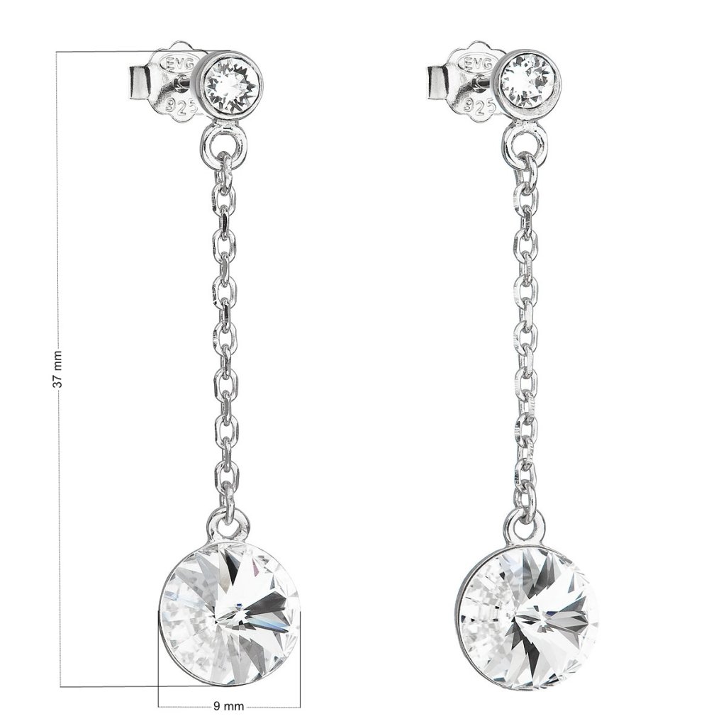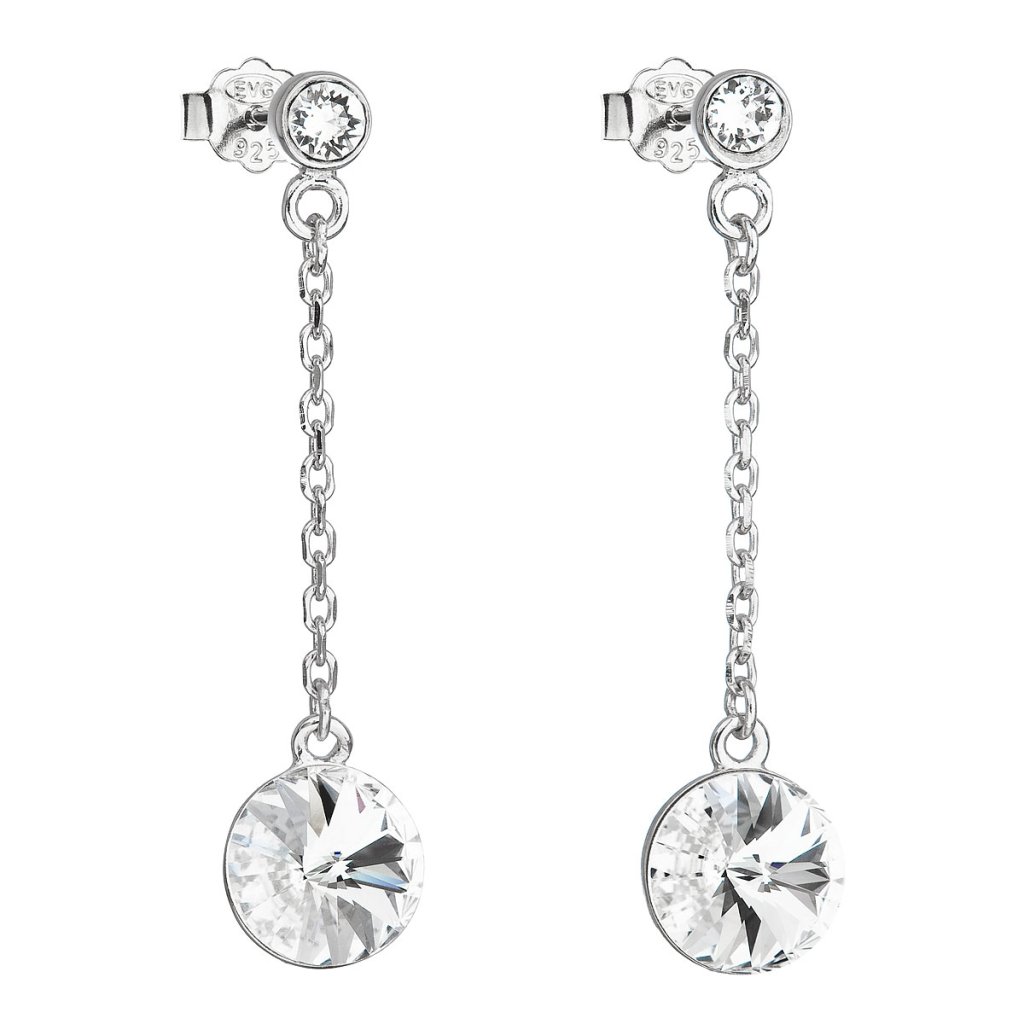 Strieborné náušnice visiace s kryštálmi Swarovski biele okrúhle 31270.1