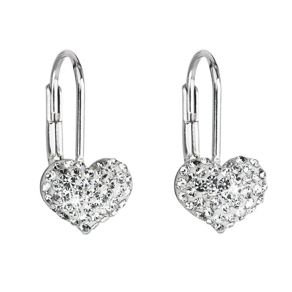 Strieborné náušnice visiace s kryštálmi Swarovski biele srdce 31125.1