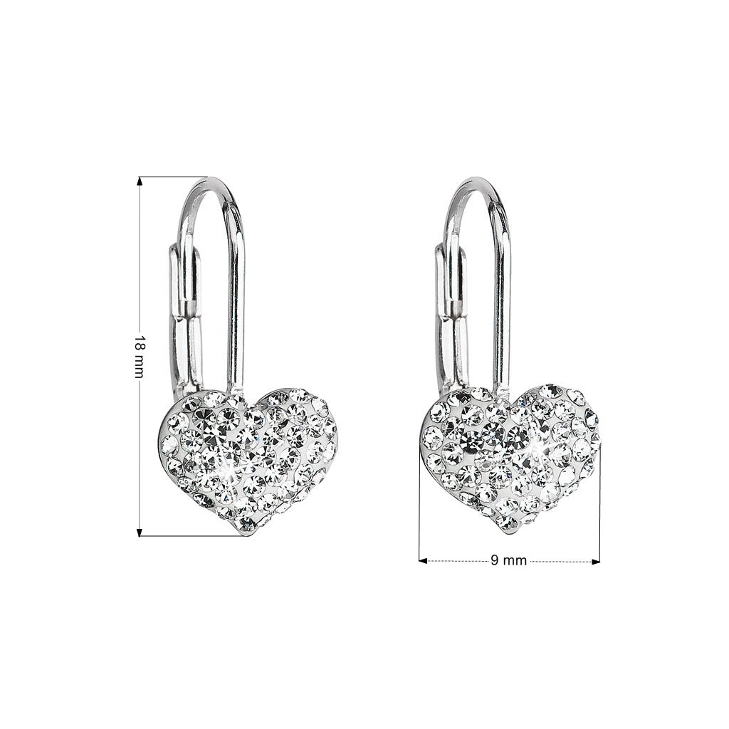 Parametre strieborných visiacich náušníc s kryštálmi Swarovski biele srdce 31125.1