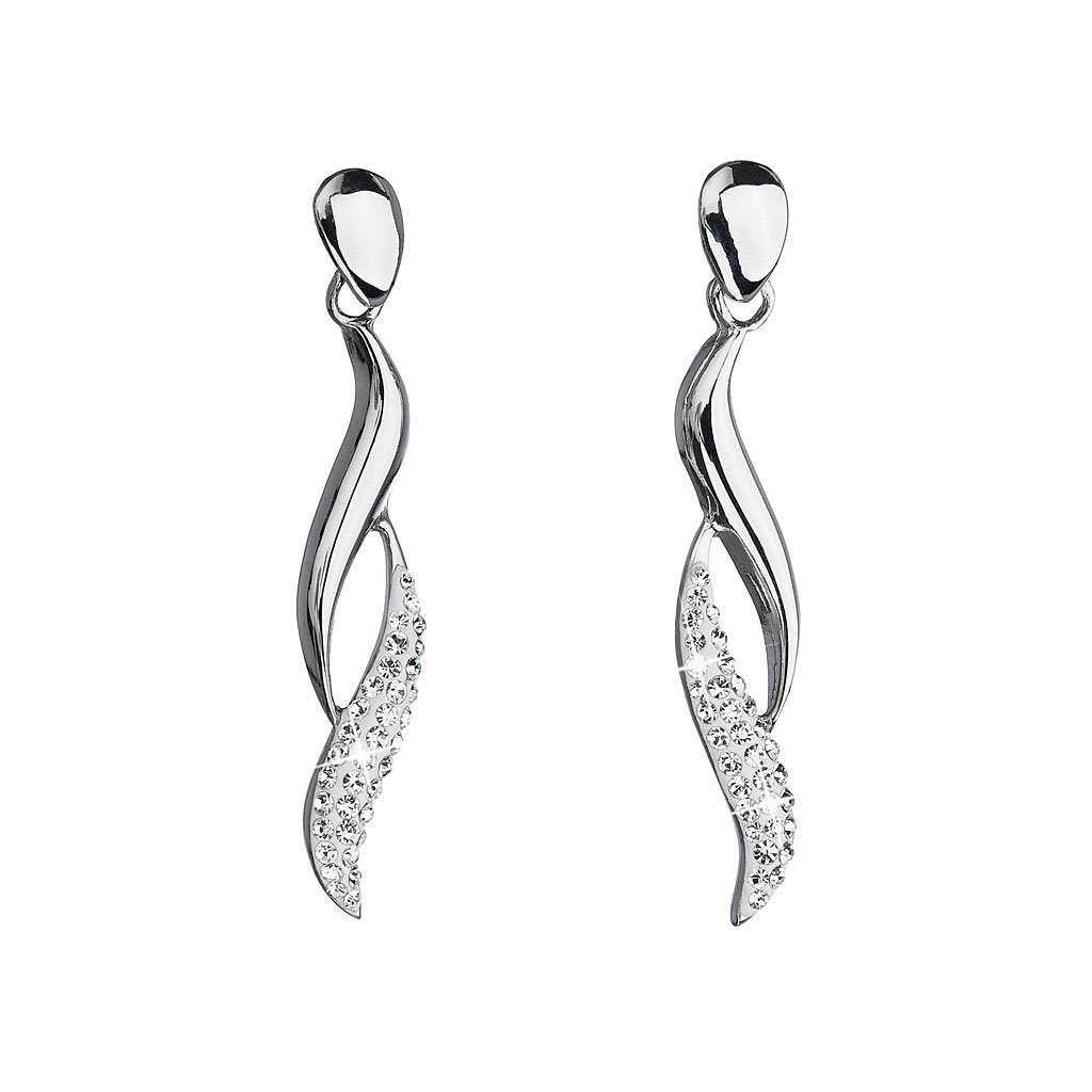 Strieborné náušnice visiace s kryštálmi Swarovski biele vlnky 31162.1