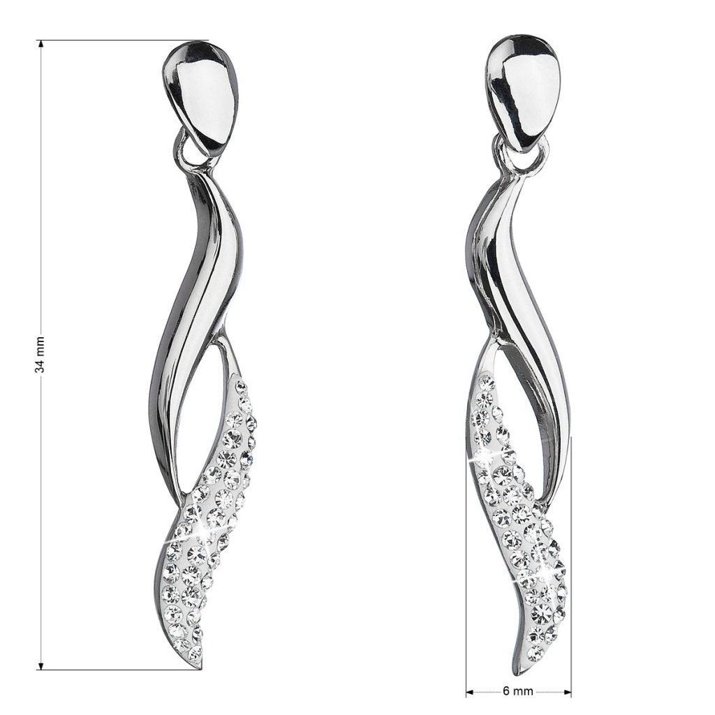 Parametre strieborných visiacich náušníc s kryštálmi Swarovski biele vlnky 31162.1