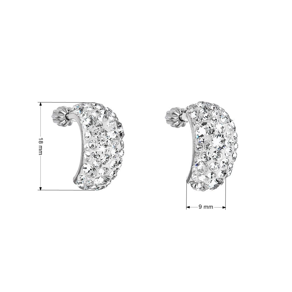 Strieborné náušnice visiace s kryštálmi Swarovski biely polkruh 31164.1