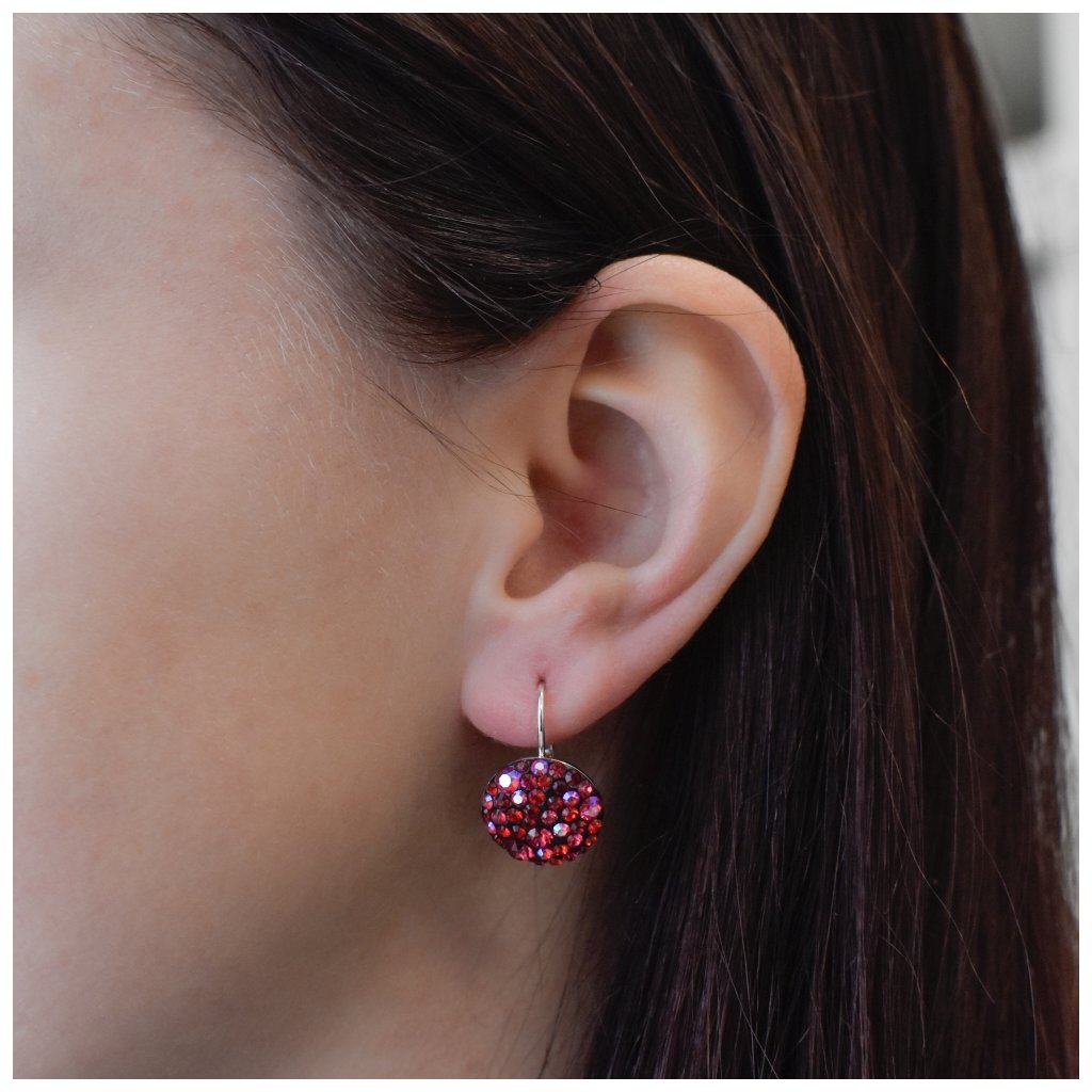 Strieborné náušnice visiace s kryštálmi Swarovski červené okrúhle 31176.3 cherry