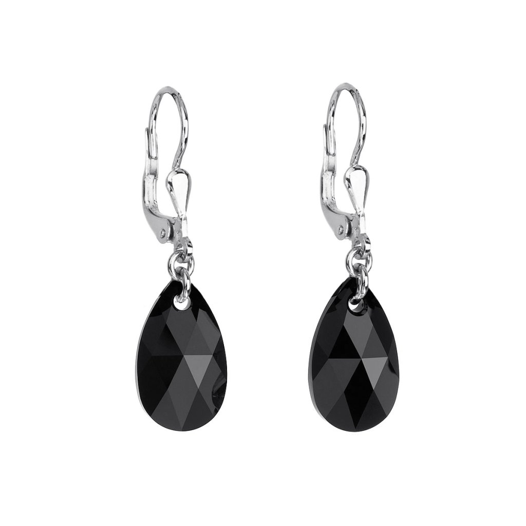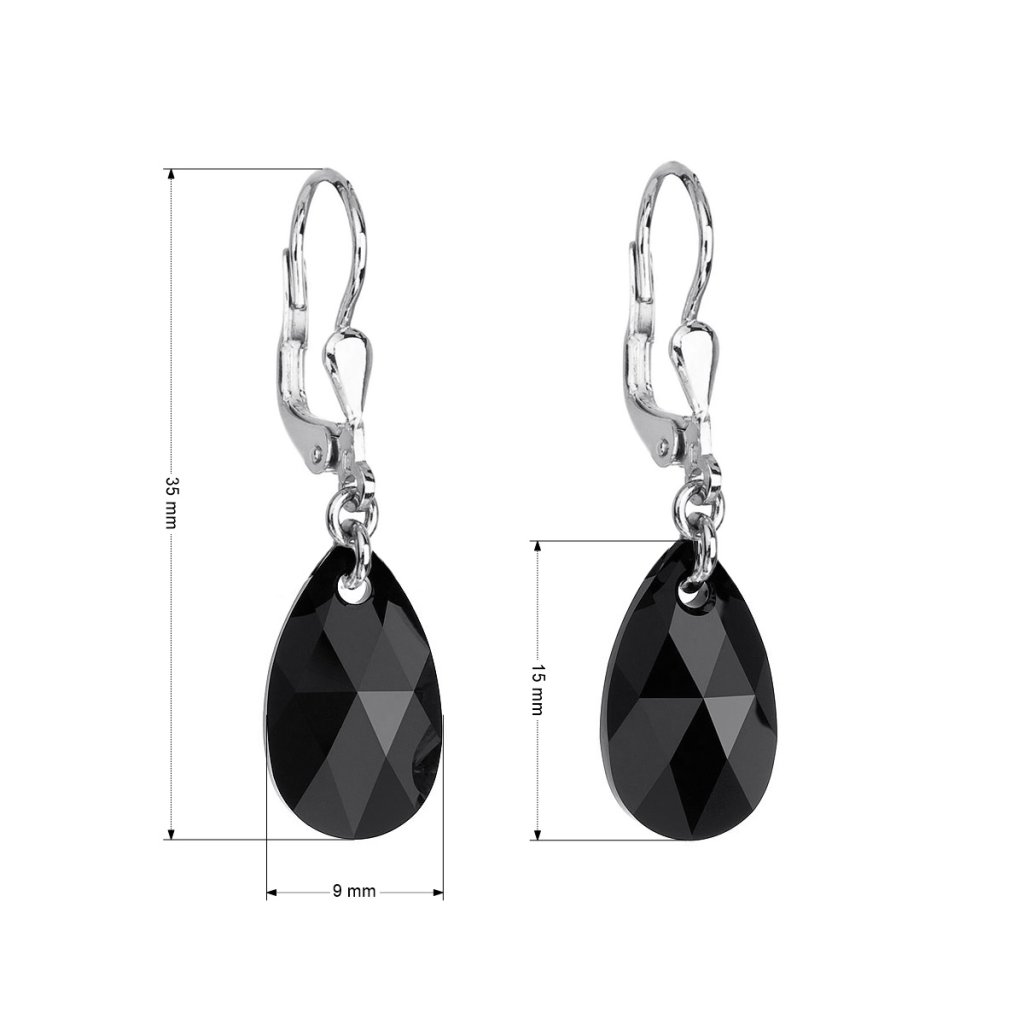 Elegantné náušnice so Swarovski kryštálmi v tvare slzičiek vkusne doplnia akýkoľvek outfit.Náušnice sú vyrobené zo striebra rýdzosti 925/1000, ktoré prešlo povrchovou úpravou ródiom. Ródium chráni šperk proti sčerneniu, zožltnutiu i poškriabaniu. Prívesok aj náušnice sú zdobené čiernym Swarovski kryštálom. Náušnice majú zapínanie na klasickú klapku. Keďže šperky neobsahujú žiadny prídavok niklu , môžu ich bez obáv nosiť aj alergici.