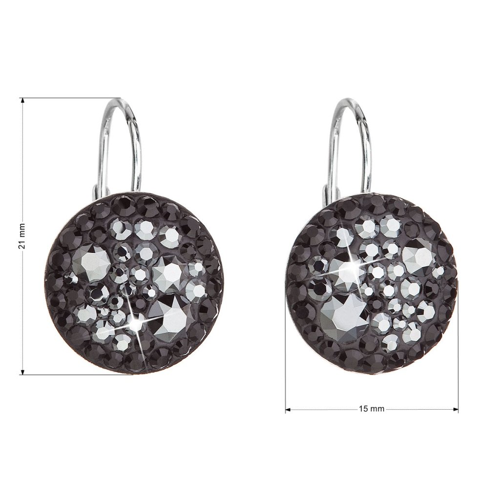 Strieborné náušnice visiace s kryštálmi Swarovski čierne okrúhle 31176.5 hematite