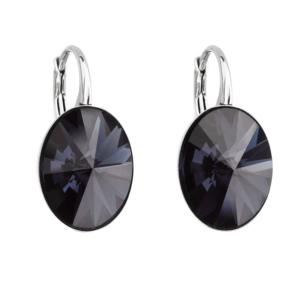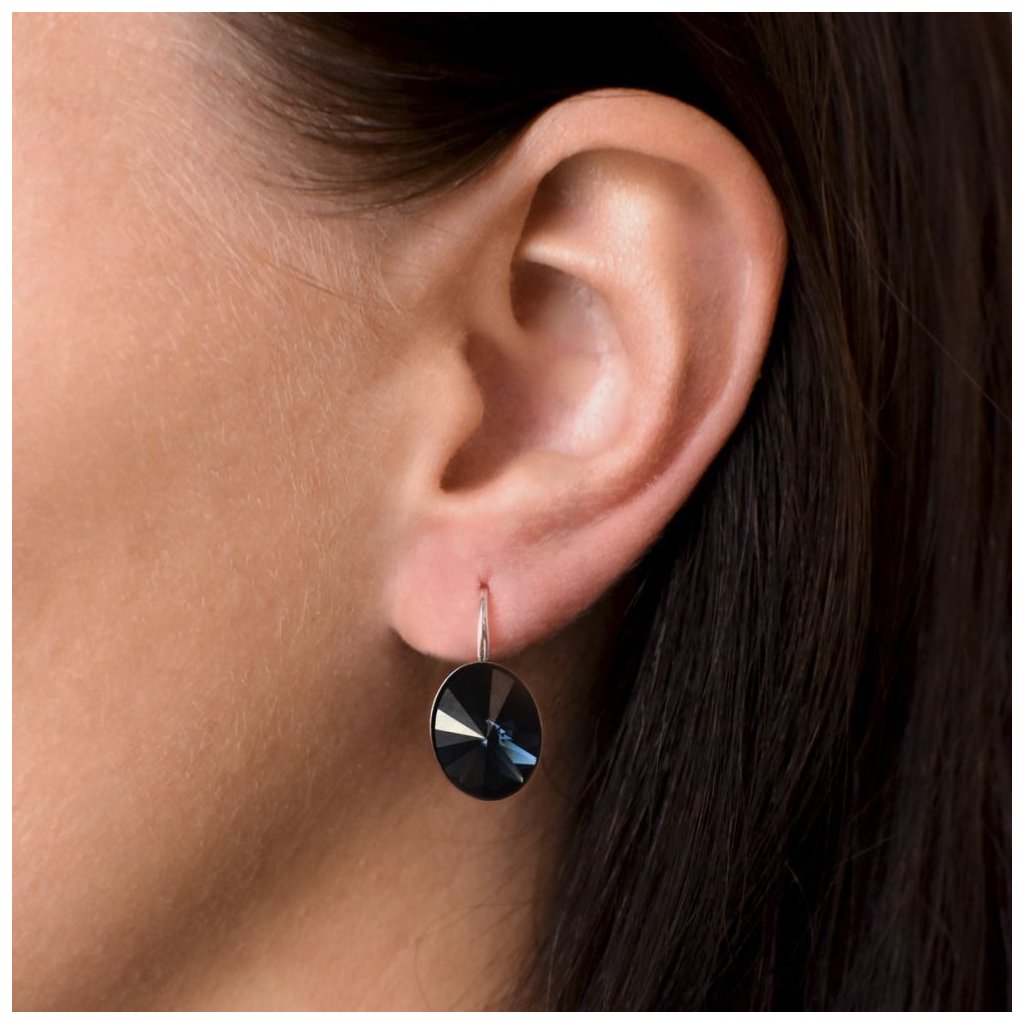 Strieborné náušnice visiace s kryštálmi Swarovski čierny ovál 31275.3