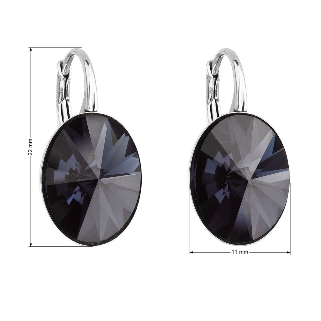 Parametre strieborných náušníc visiace s kryštálmi Swarovski čierny ovál 31275.3