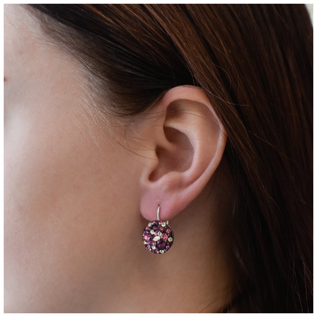 Strieborné okrúhle visiace náušnice 31176.3 ametyst septembra mnohých kryštálov Swarovski. Fialová farba kryštálov korešponduje s rhodiovaným striebrom 925/1000, z ktorého sú náušnice vytvorené. Rhodium udrží šperk v skvelej forme - bez zažltnutia aj sčernania. Zároveň chráni náušnice 31176.3 ametyst proti poškriabaniu. Šperk neobsahuje nikel, je teda vhodným darčekom aj pre alergikov.