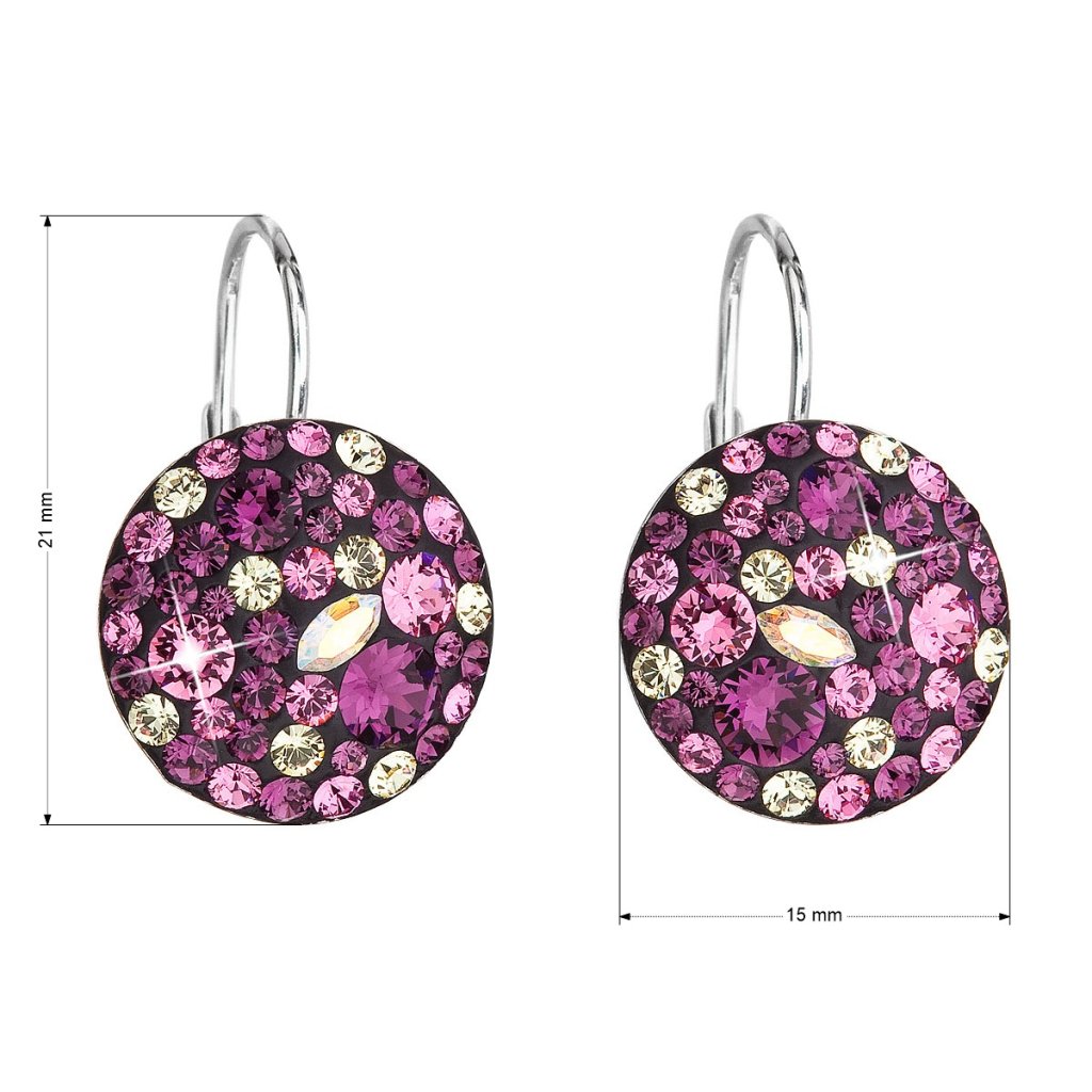Parametre strieborných náušníc visiace s kryštálmi Swarovski fialové okrúhle 31176.3 ametyst