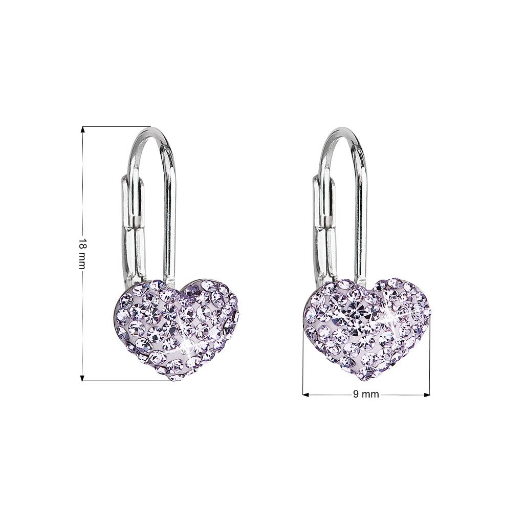 Parametre strieborných visiacich náušníc s kryštálmi Swarovski fialové srdce 31125.3
