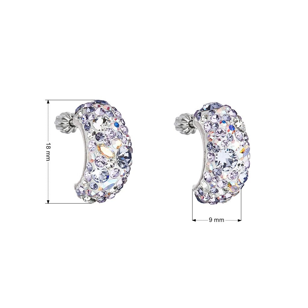 Parametre strieborných visiacich náušníc s kryštálmi Swarovski fialový polkruh 31164.3