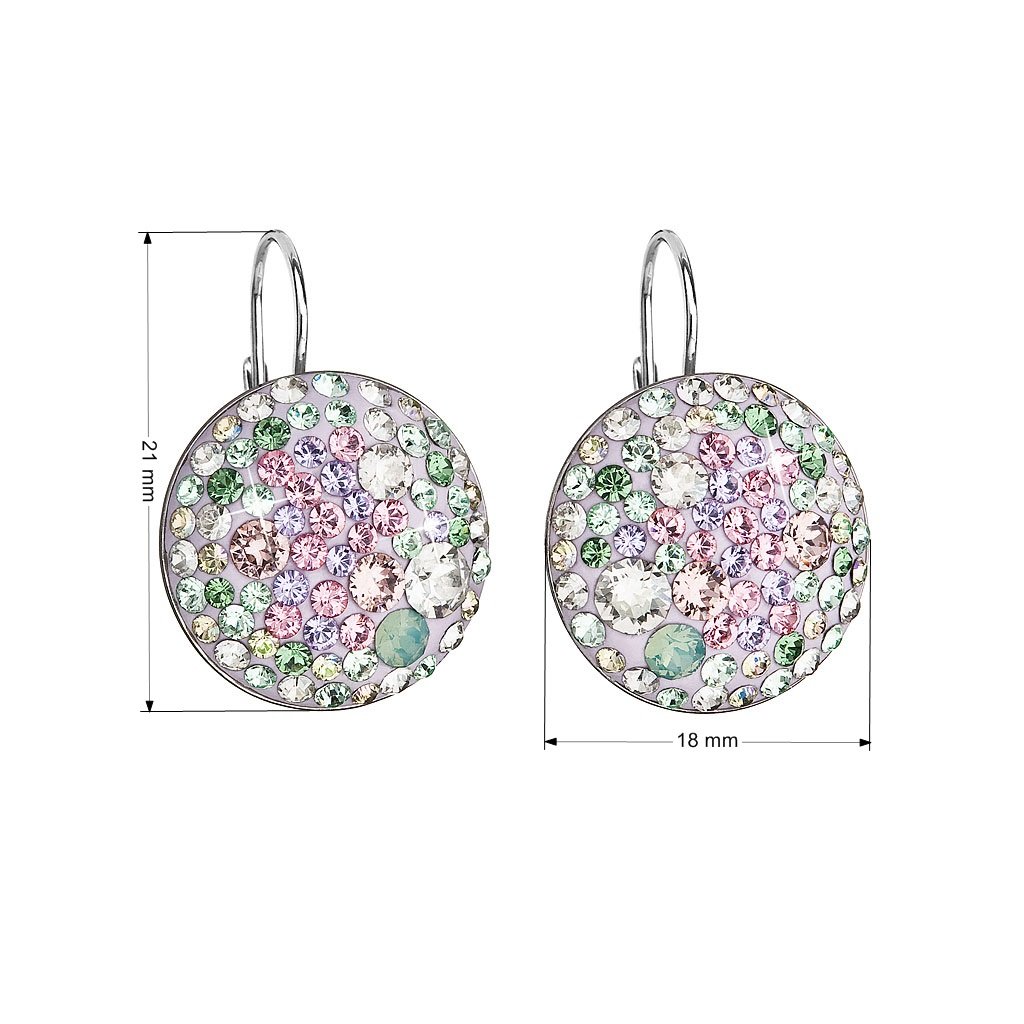 Strieborné náušnice visiace s kryštálmi Swarovski mix farieb okrúhle 31161.3 sakura