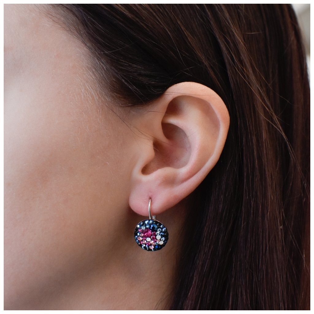 Strieborné náušnice visiace s kryštálmi Swarovski mix farieb okrúhle 31176.4 galaxy