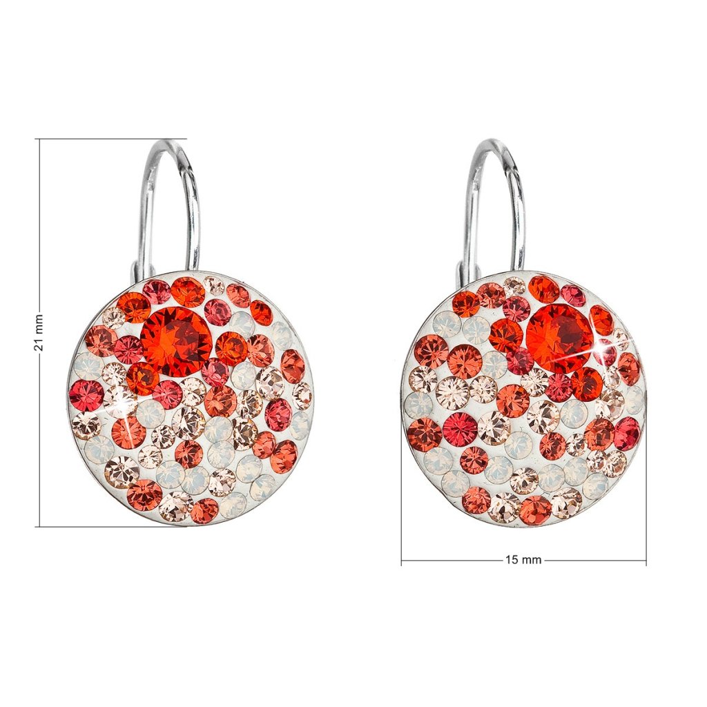 Strieborné náušnice visiace s kryštálmi Swarovski mix farieb oranžová okrúhle 31176.3 sunset