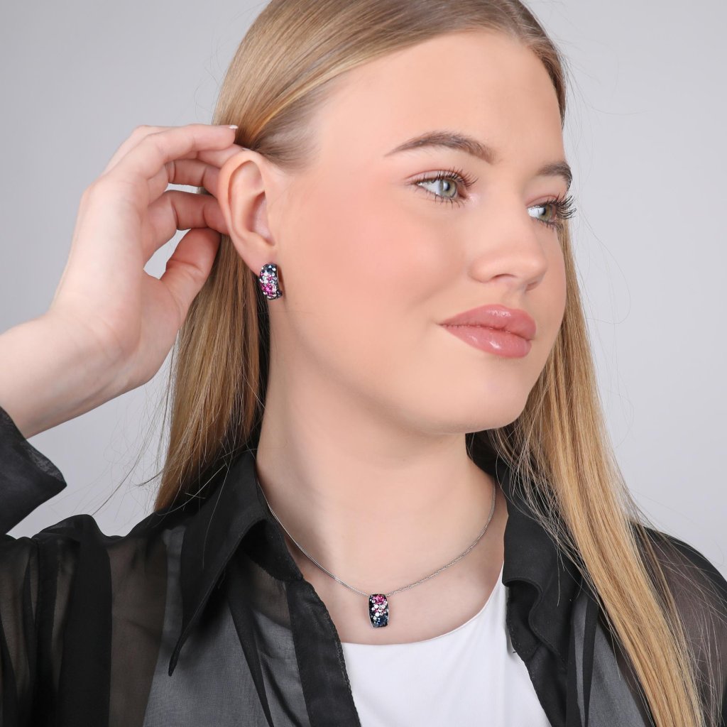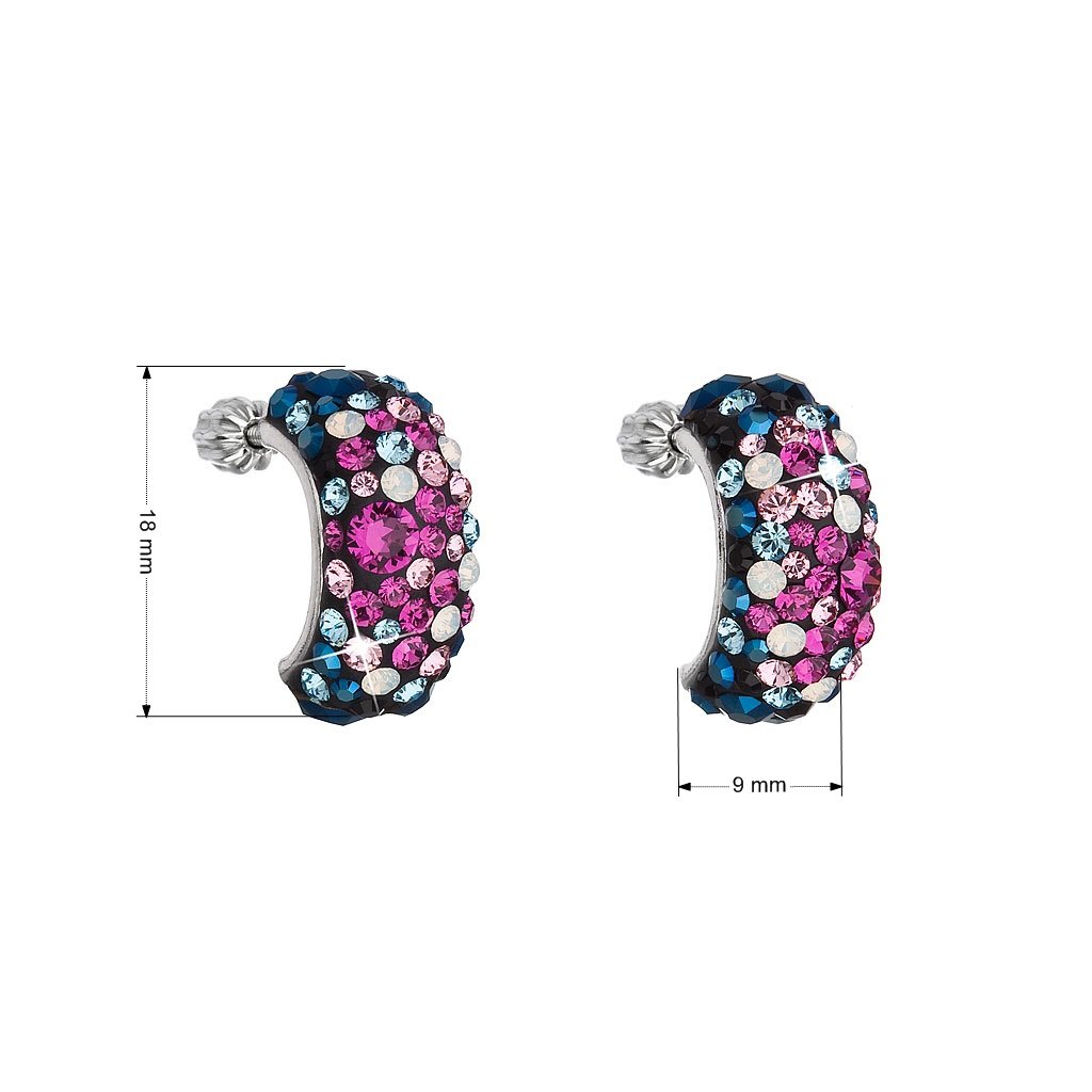 Parametre strieborných visiacich náušníc s kryštálmi Swarovski mix farieb polkruh 31164.4 galaxy