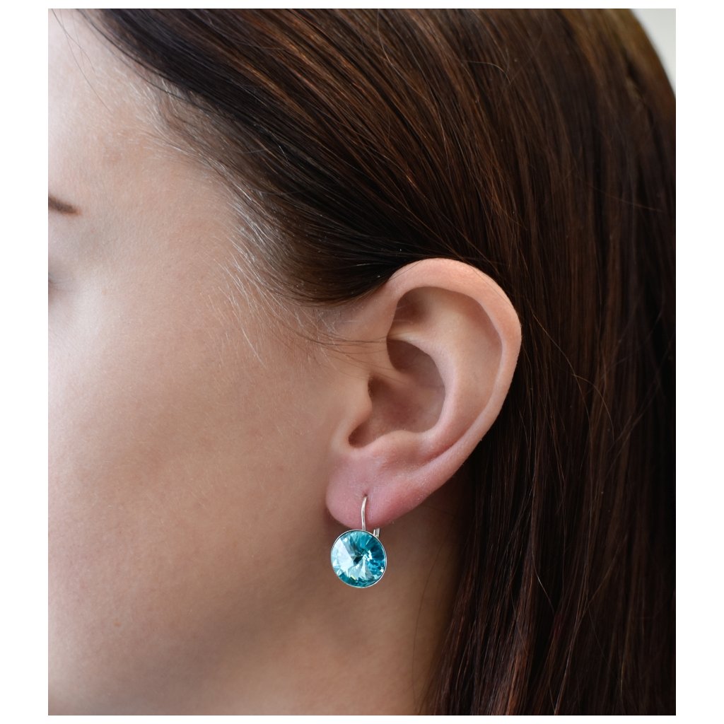 Strieborné náušnice visiace s kryštálmi Swarovski modré okrúhle 31106.3 light turquoise