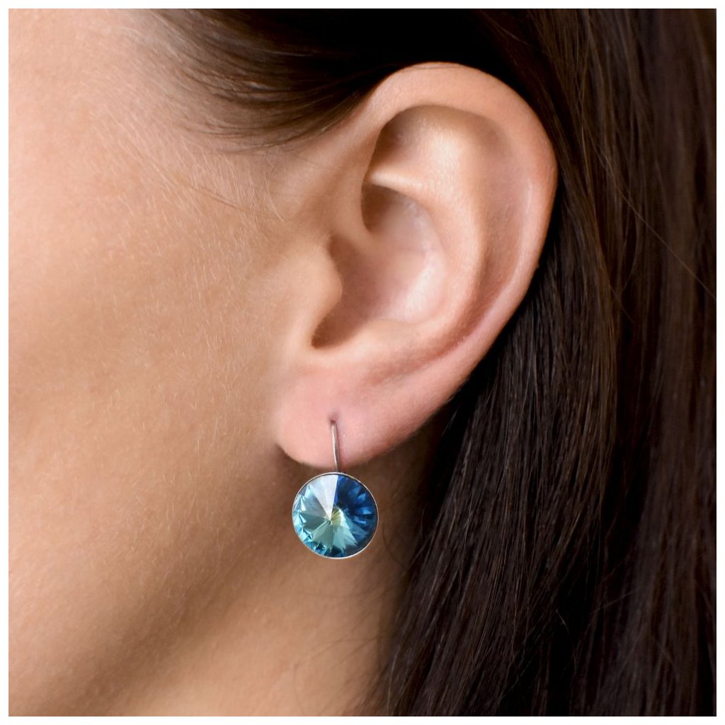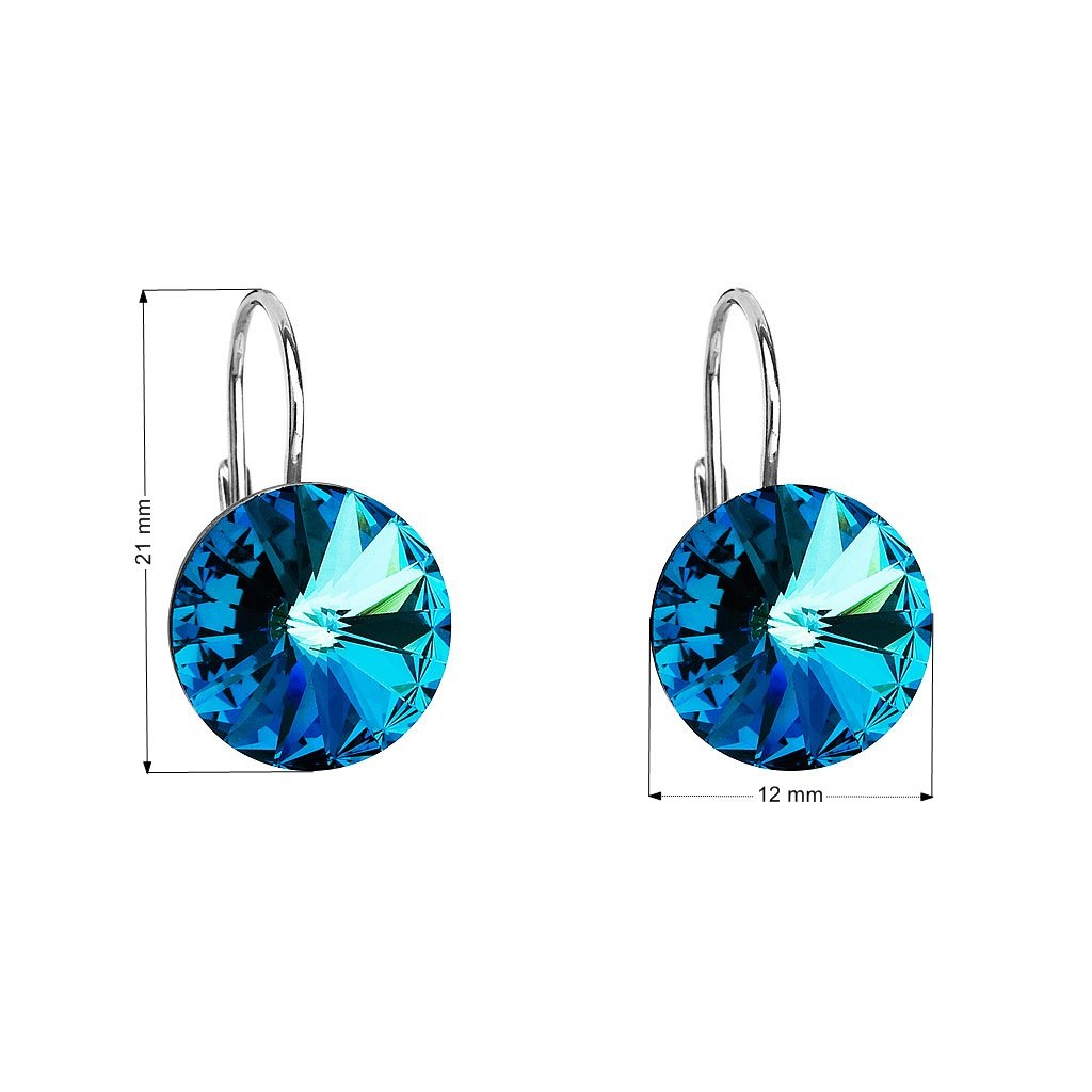 Parametre strieborných visiacich náušníc s kryštálmi Swarovski modré okrúhle 31106.5