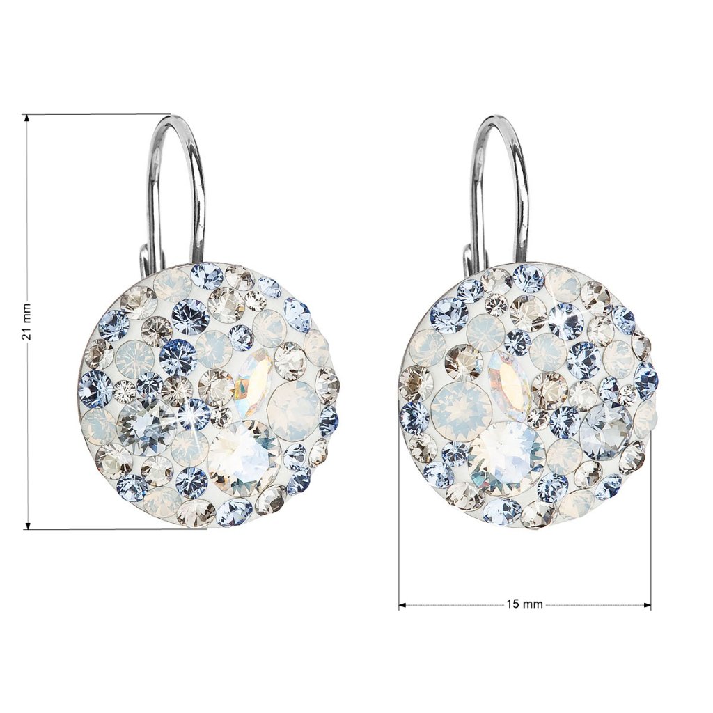 Parametre strieborných náušníc visiace s kryštálmi Swarovski modré okrúhle 31176.3 light sapphire