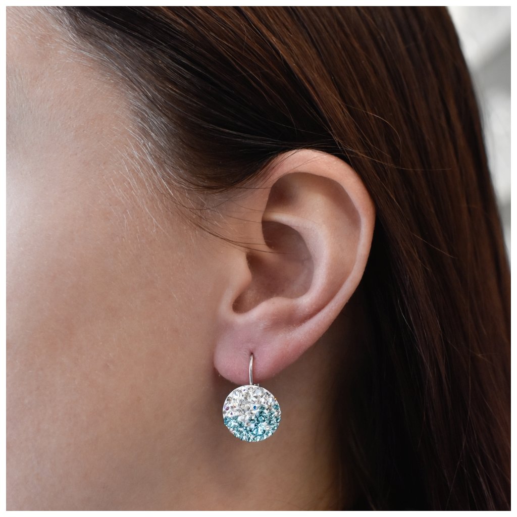Strieborné náušnice visiace s kryštálmi Swarovski modré okrúhle 31176.3 light turquoise