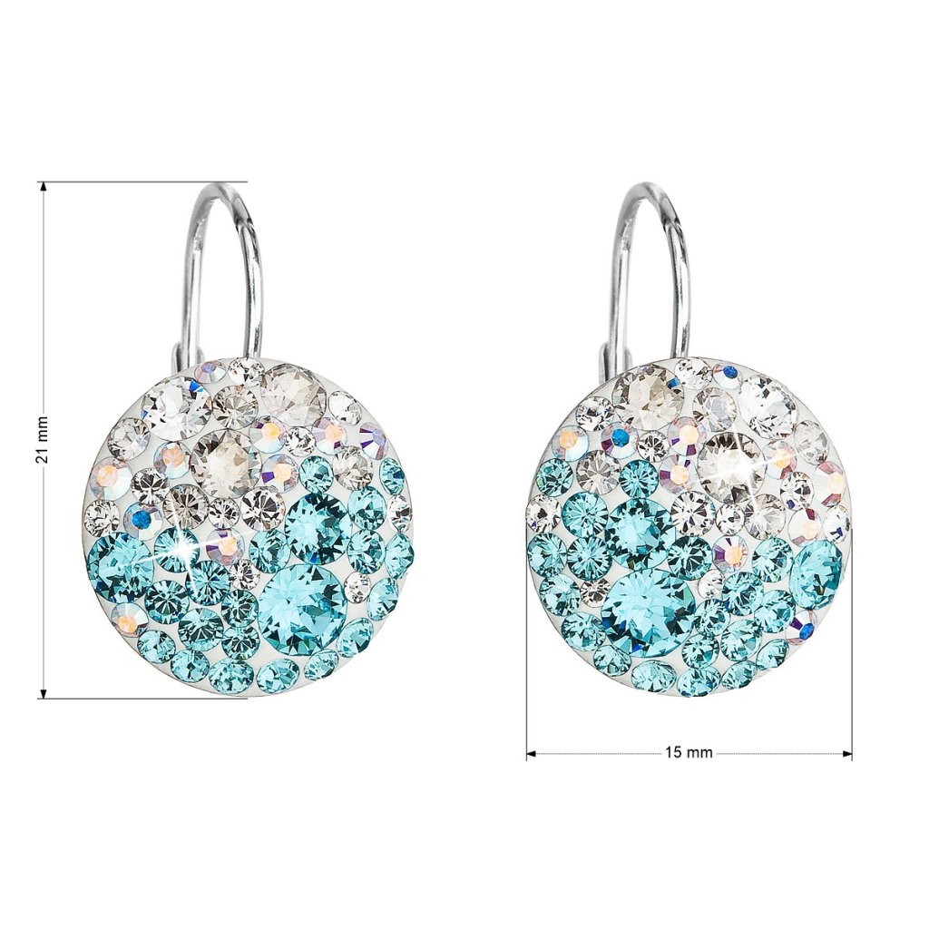 Parametre strieborných náušníc visiace s kryštálmi Swarovski modré okrúhle 31176.3 light turquoise