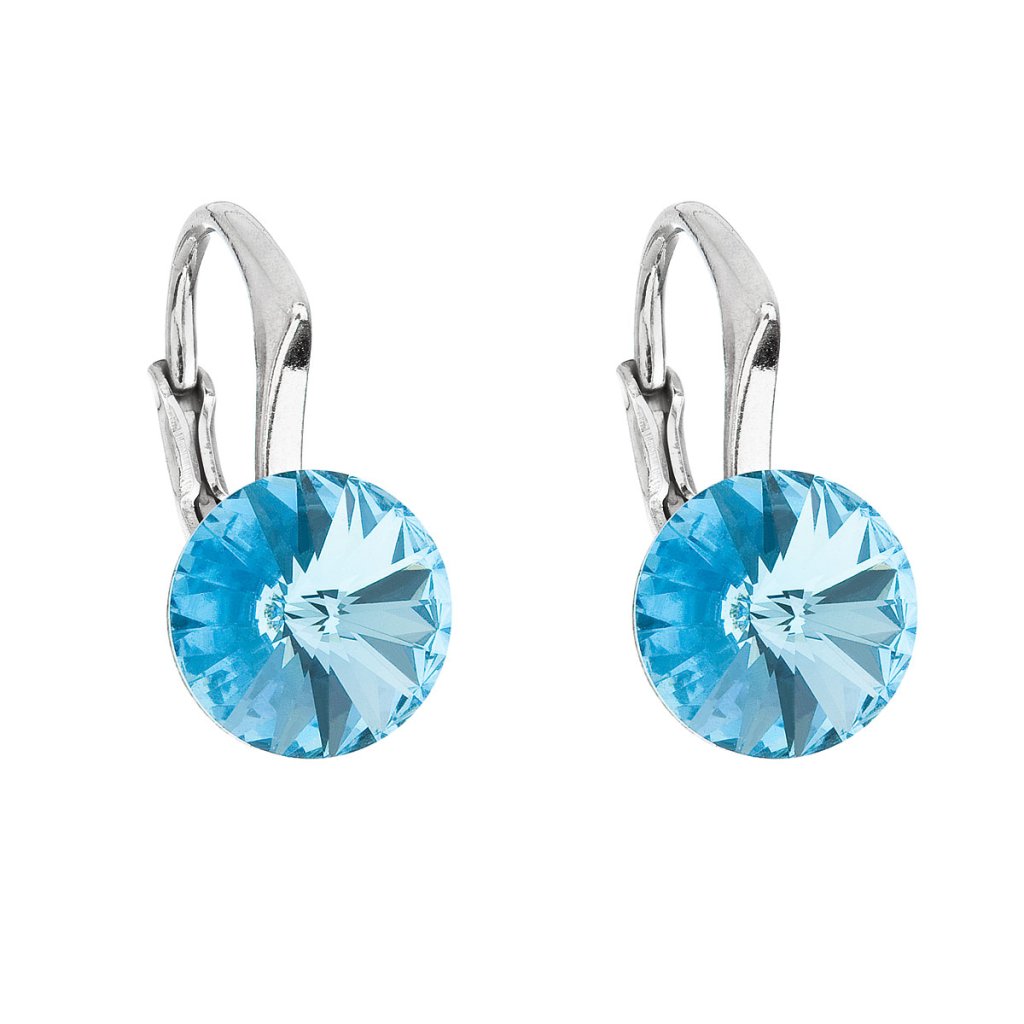 Strieborné náušnice visiace s kryštálmi Swarovski modré okrúhle 31229.3 aqua