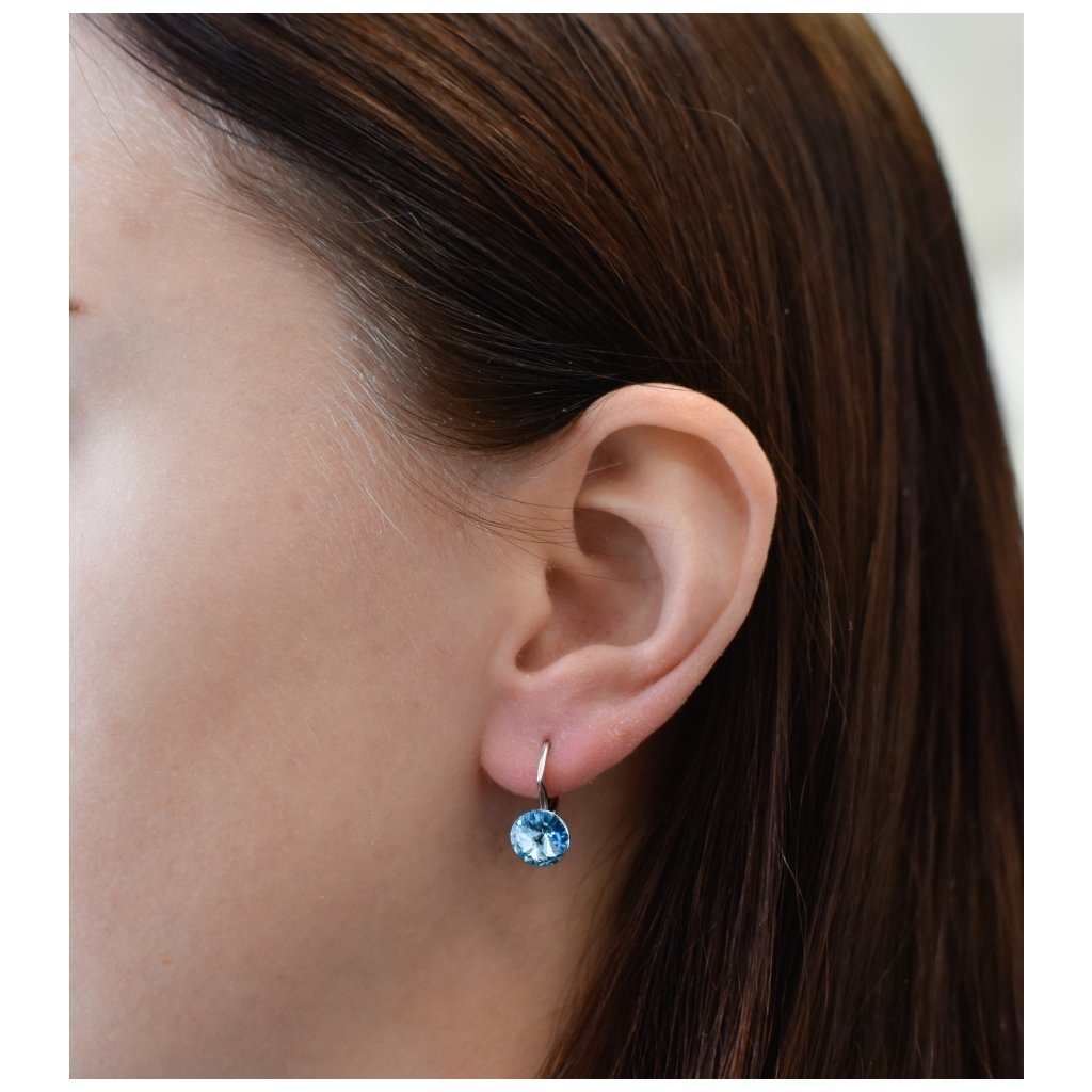 Parametre strieborných visiacich náušníc s kryštálmi Swarovski modré okrúhle 31229.3 aqua