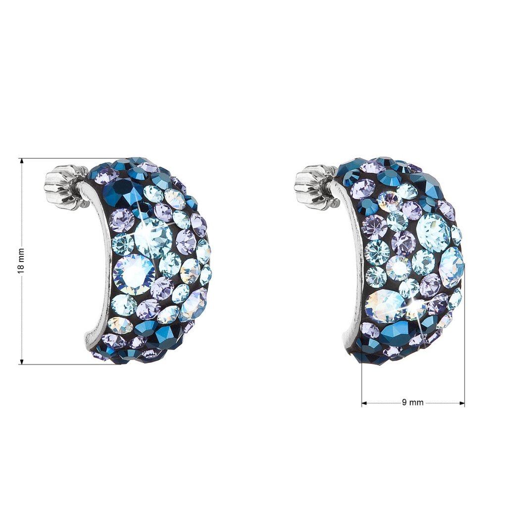 Parametre strieborných visiacich náušníc s kryštálmi Swarovski modré polkruh 31164.3 blue style