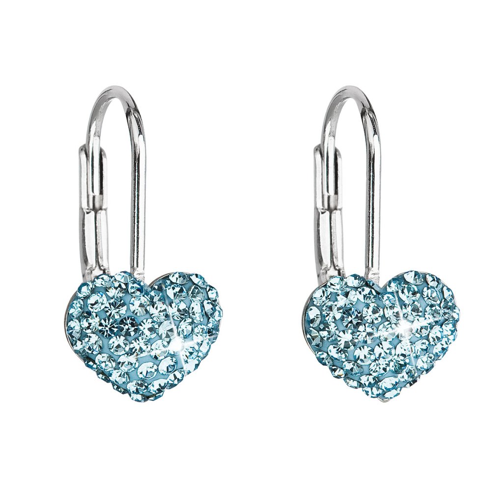 Strieborné náušnice visiace s kryštálmi Swarovski modré srdce 31125.3