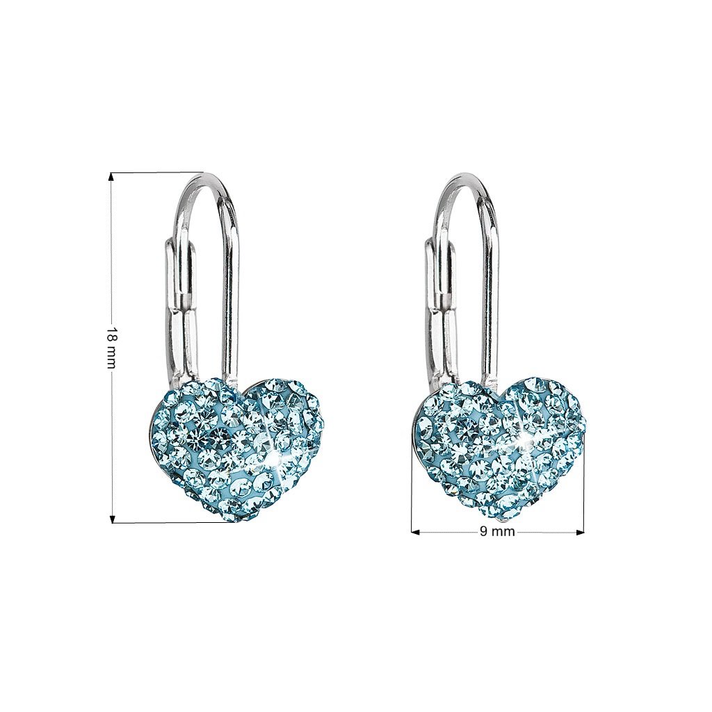 Parametre strieborných visiacich náušníc s kryštálmi Swarovski modré srdce 31125.3